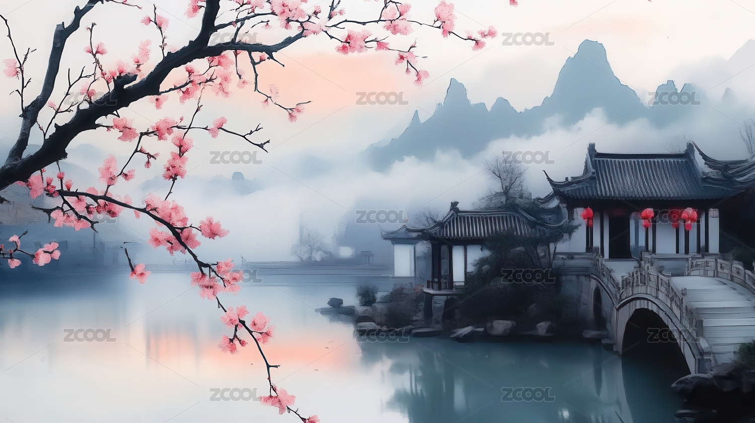 江南水乡水墨画图案