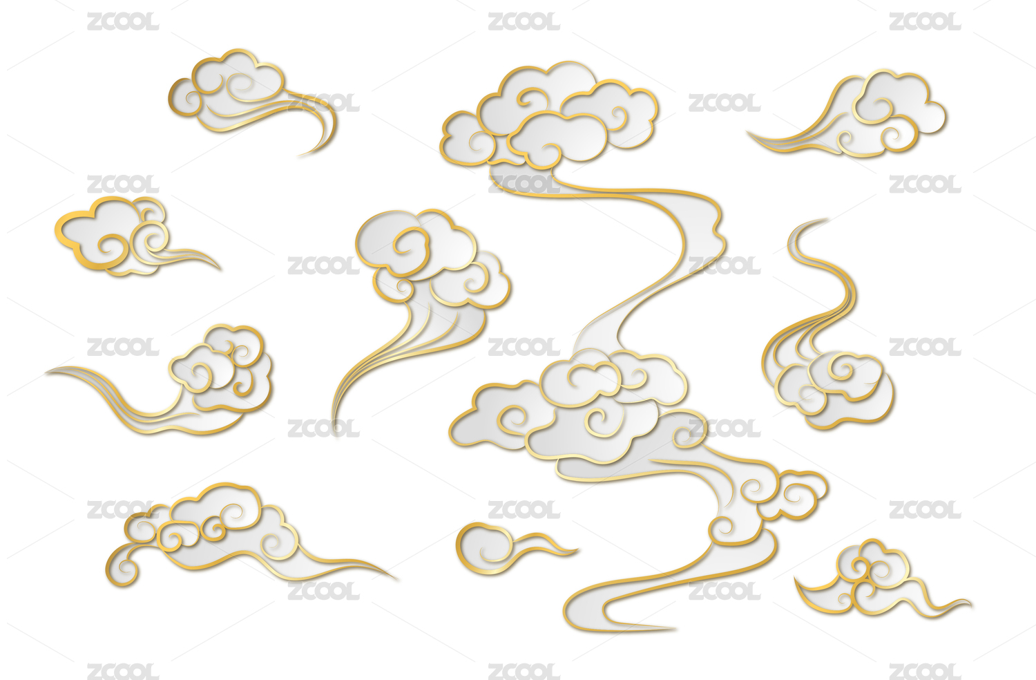 中国风祥云线稿云朵线描花纹国潮插画元素