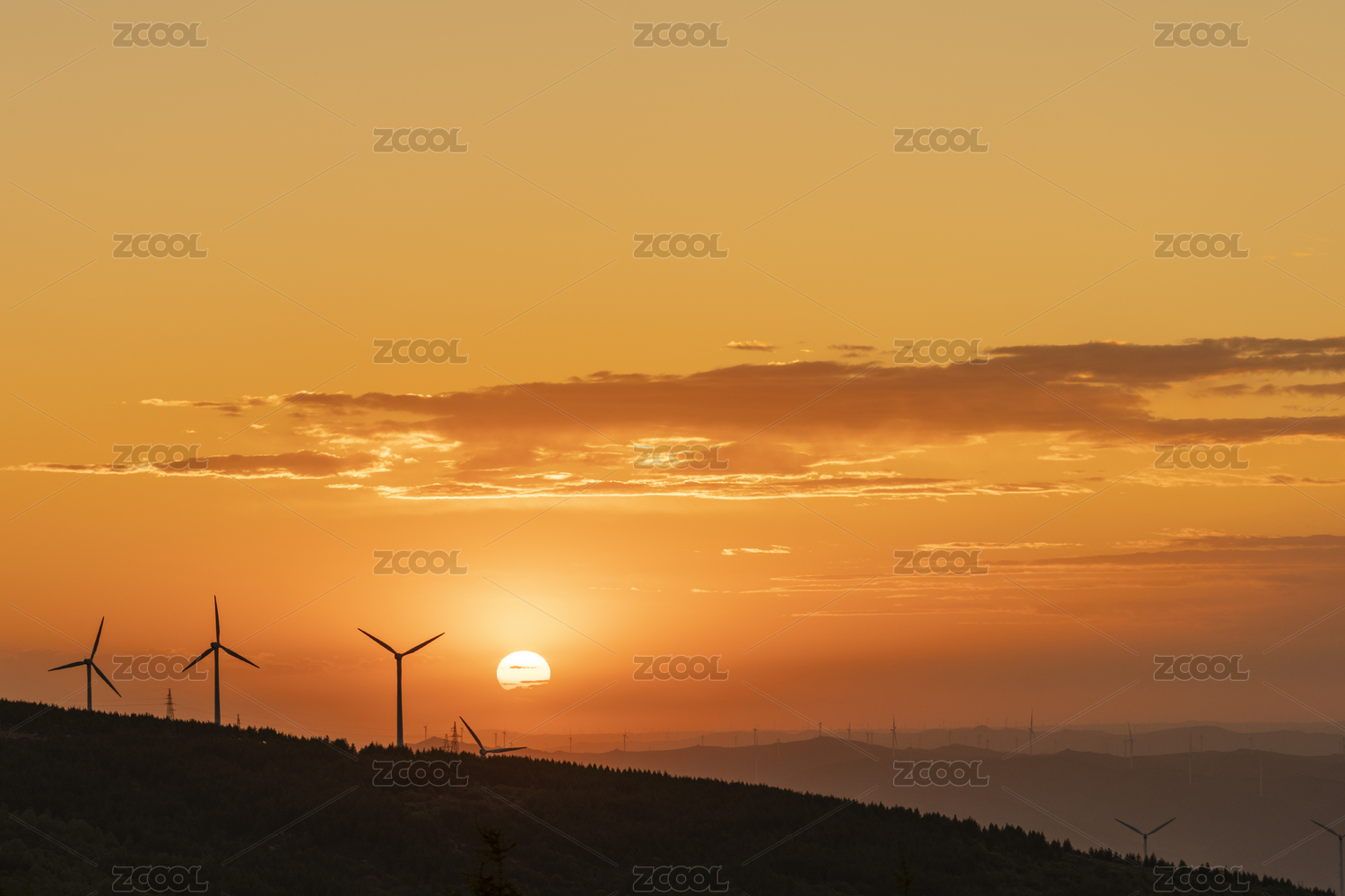 冰山梁风景区,落日,风车,岩石,冰山梁,山顶,山巅,山峦,山,天空