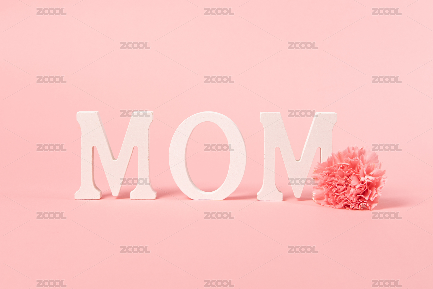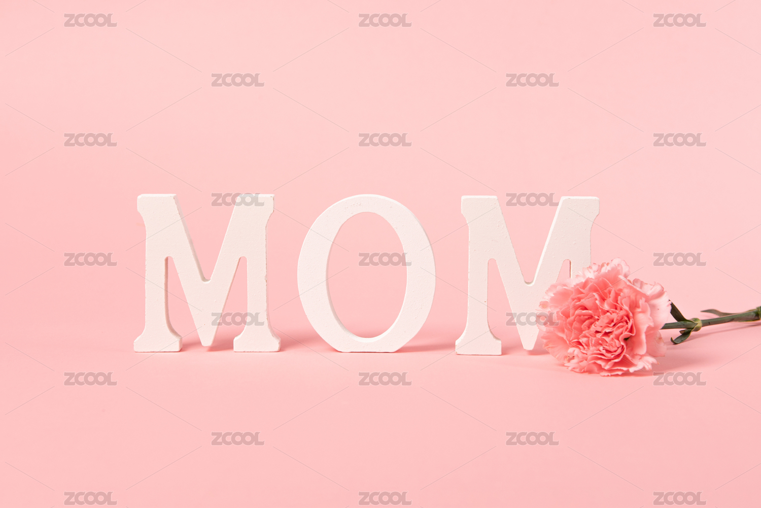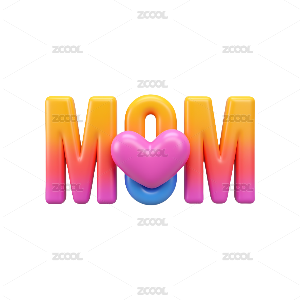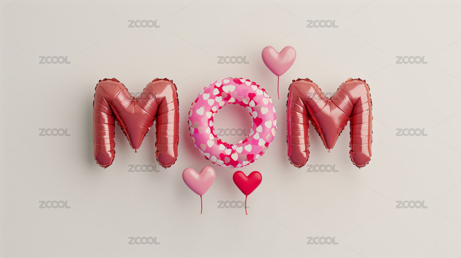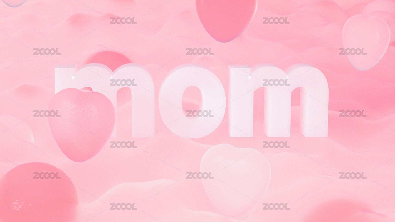 在粉红色炒冰背景中的爱心桃、母亲节冰块字