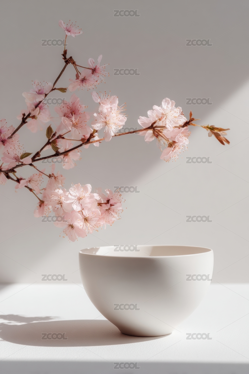 樱花茶的俯拍镜头,一杯新鲜的粉色樱花茶和樱花在白色背景上