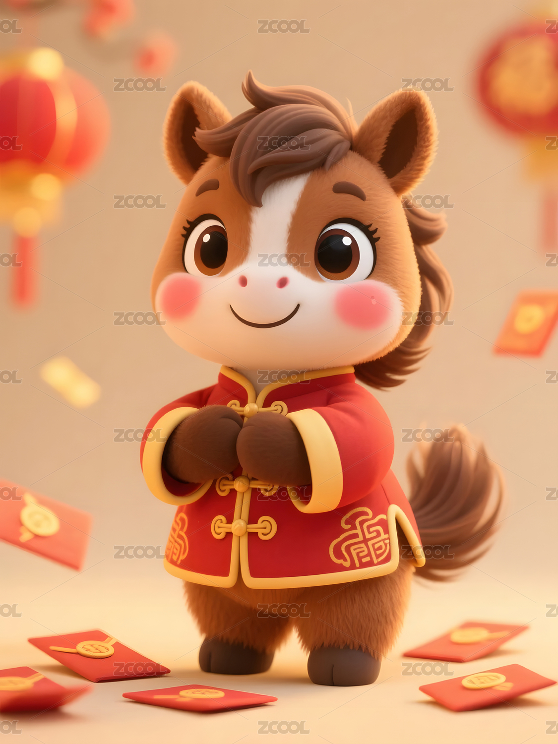 卡通小马手持红灯笼