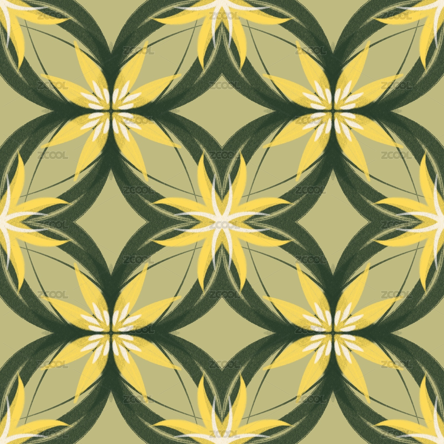 清新素雅绿色植物花叶四方连续无缝拼接图案