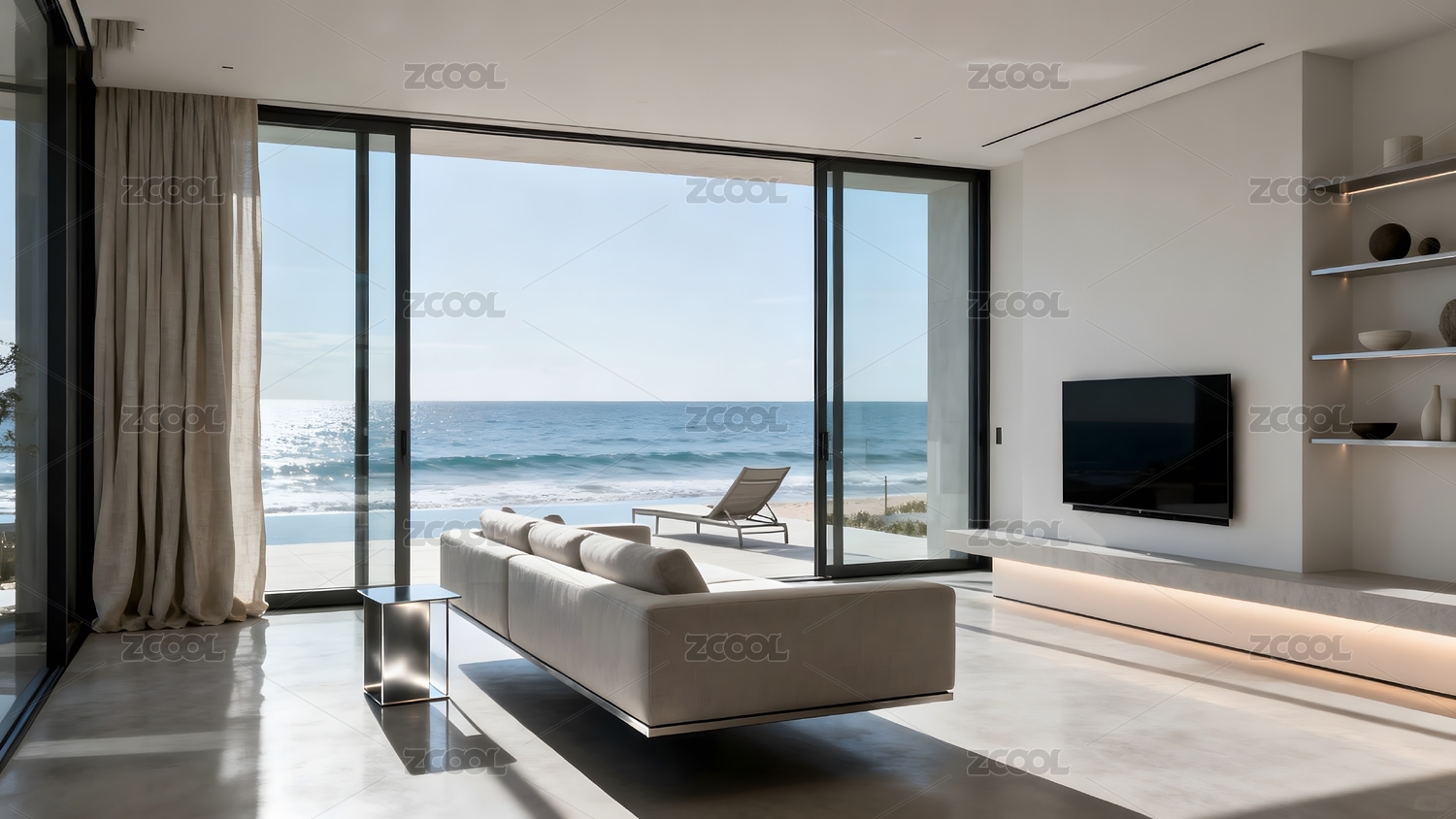 海边现代客厅全景