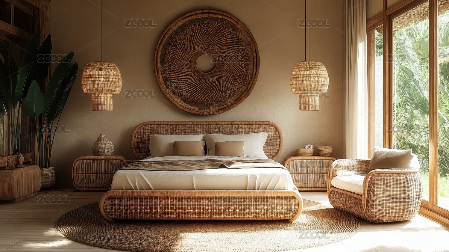 卧室,床,简约,自然,温馨,舒适,家居,设计,装饰,植物