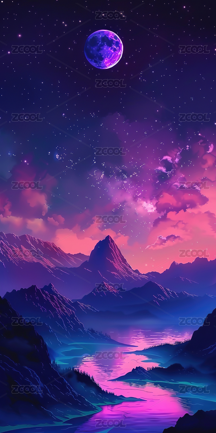 梦幻唯美夜晚星空风景插画