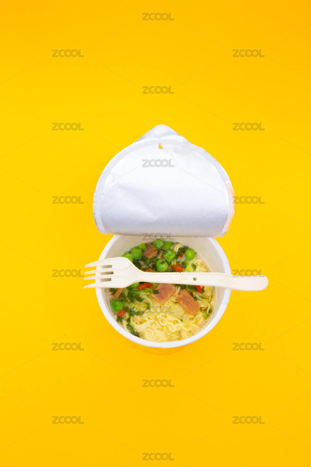 白色背景下火锅里煎蛋牛肉面条食物套餐