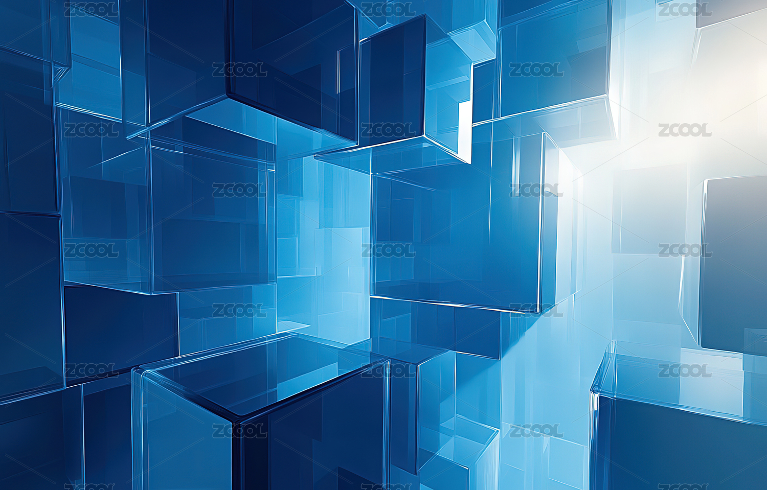 数码蓝绿色几何层叠抽象图形海报网页背景