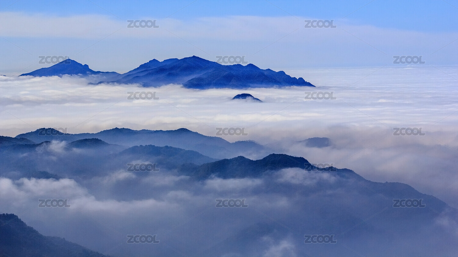 夏季重庆黑山谷茫茫群山中日落时分的云雾