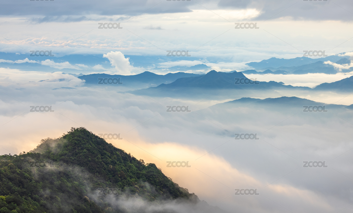 山层叠嶂,云雾缭绕,晨光,日出,高山,山顶,远处,木,森林,太阳