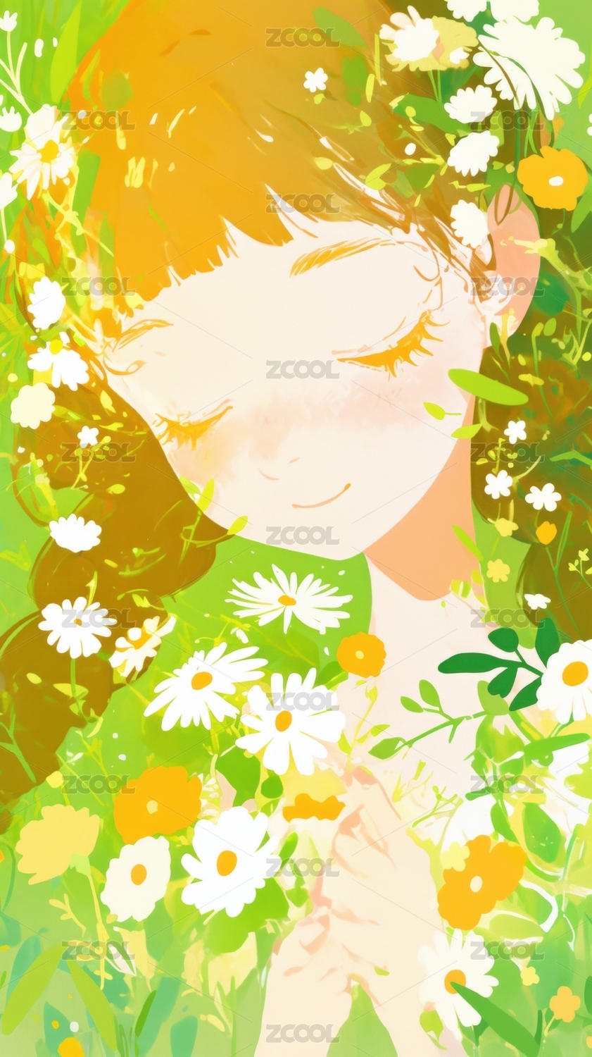 扁平,肌理,插画,绘画,清新,一个人,女孩,女生,人,治愈