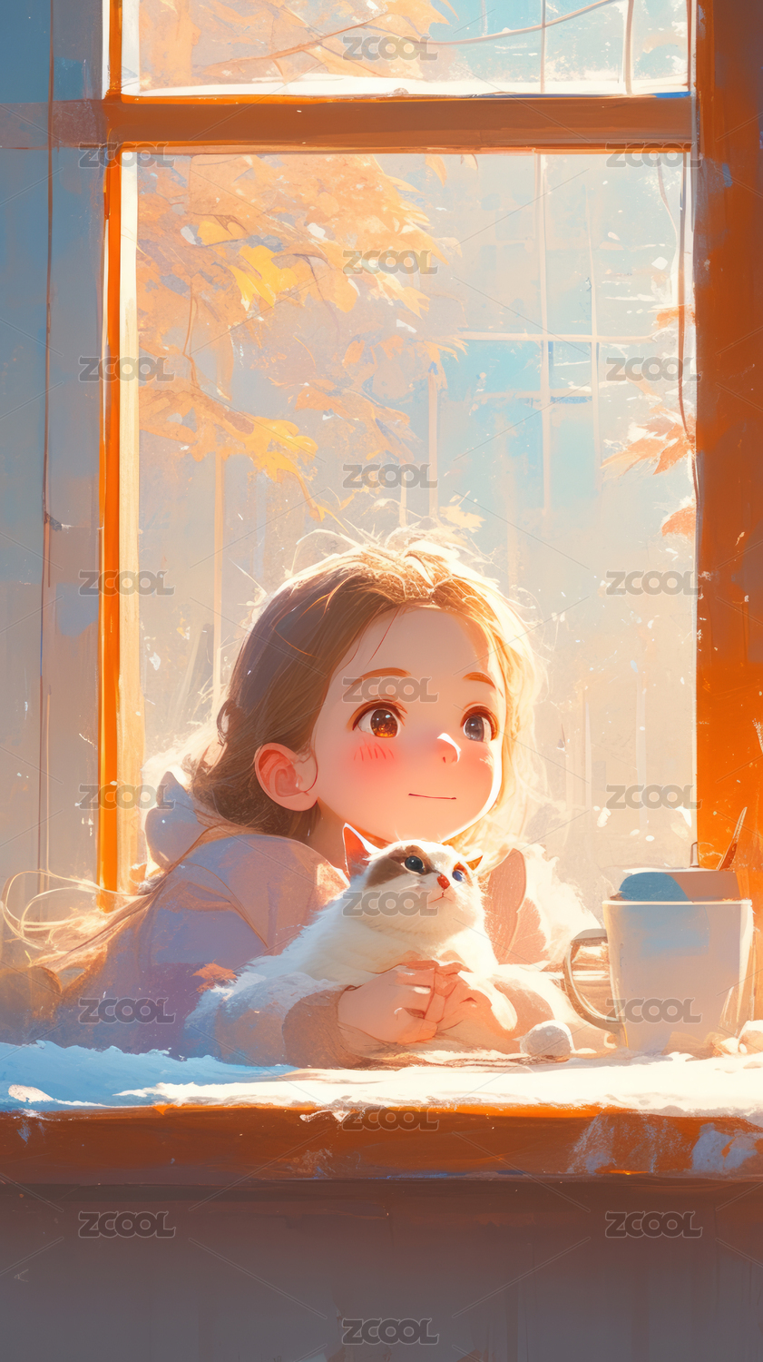 女孩和猫咪午后阳光下的甜蜜梦乡