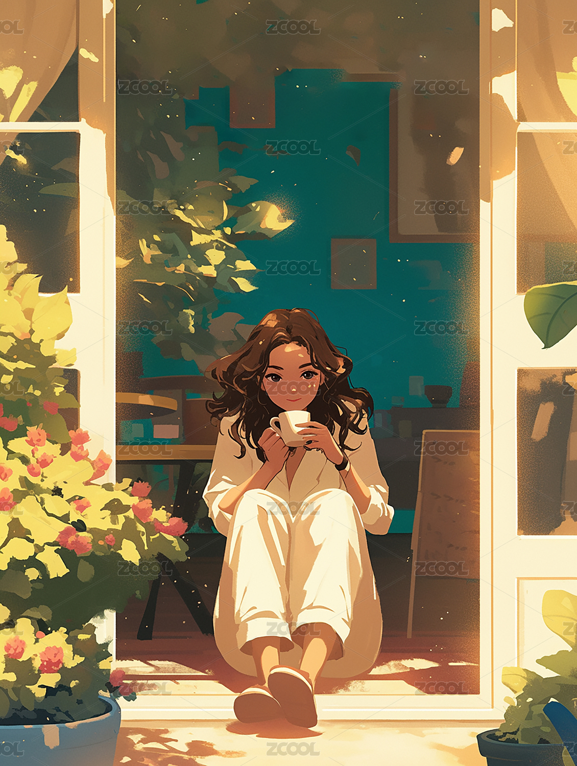 女生,女孩,少女,美女,梦幻,唯美,清新,浅色,插画,绘画
