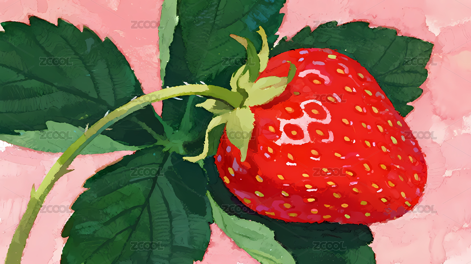 水彩草莓的清新画意