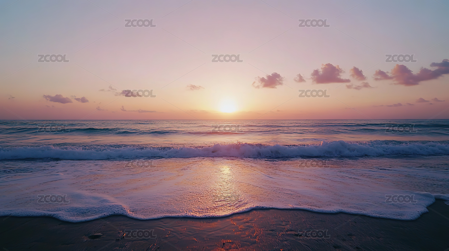 中国广东省湛江市东海岛中国第一长滩龙海天海滨浴场海滩沙滩上的海上日出朝霞