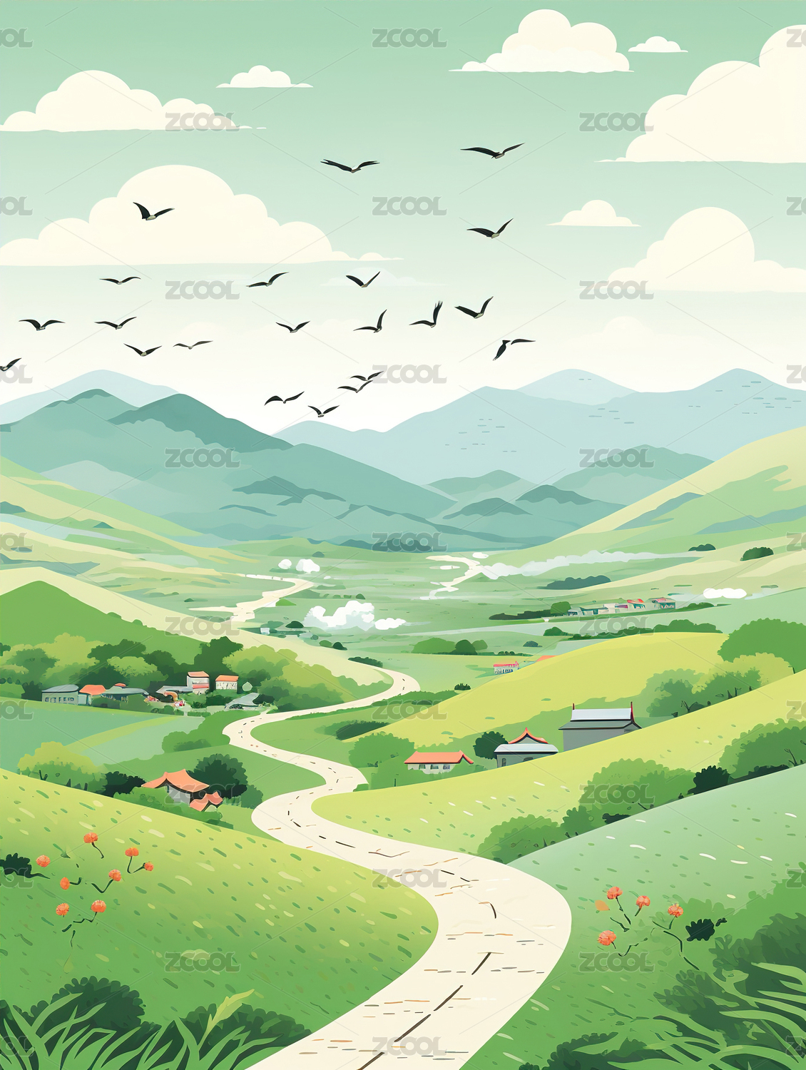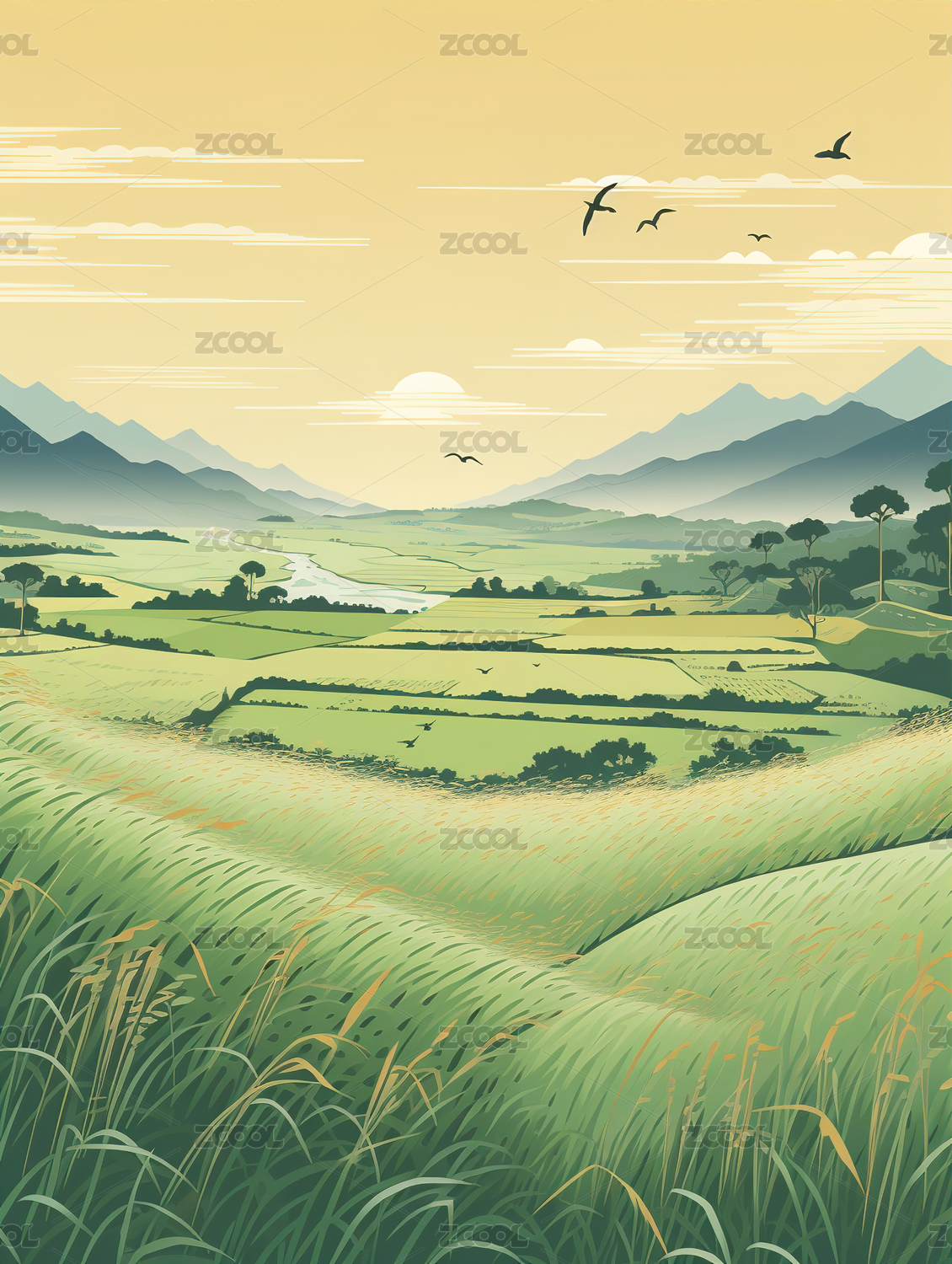 绿色山谷美景图