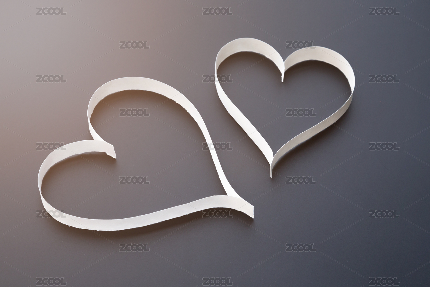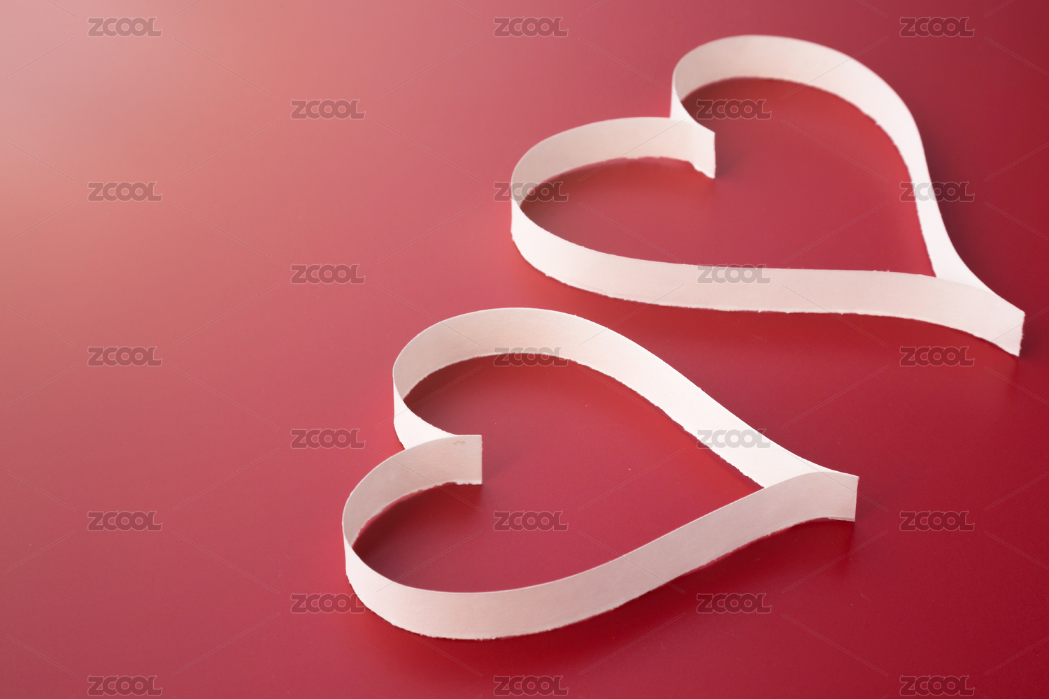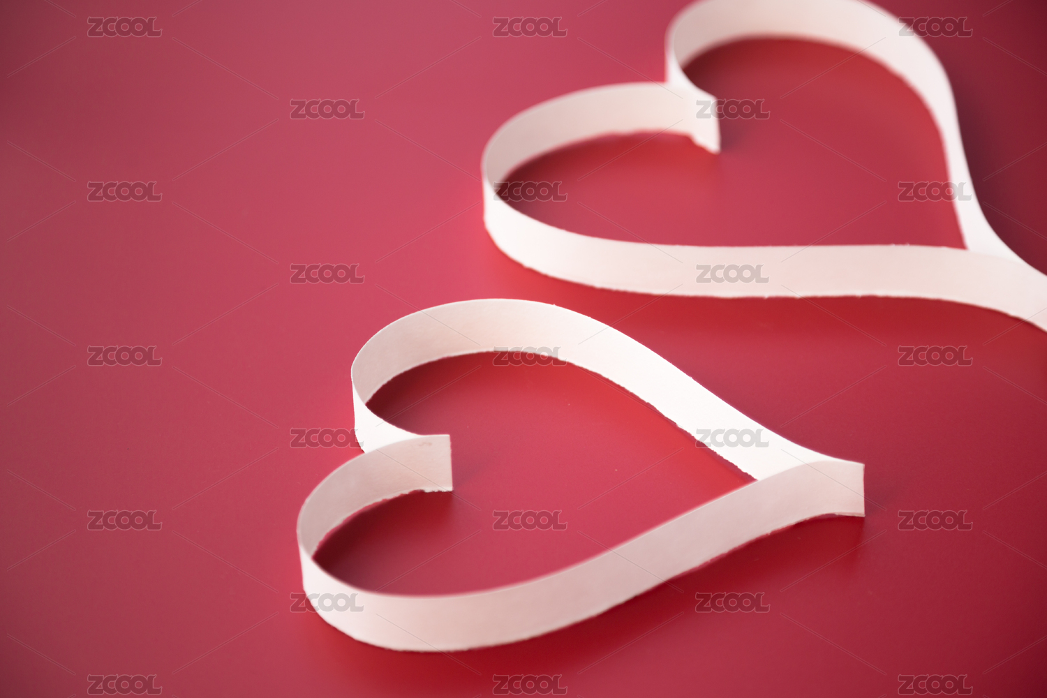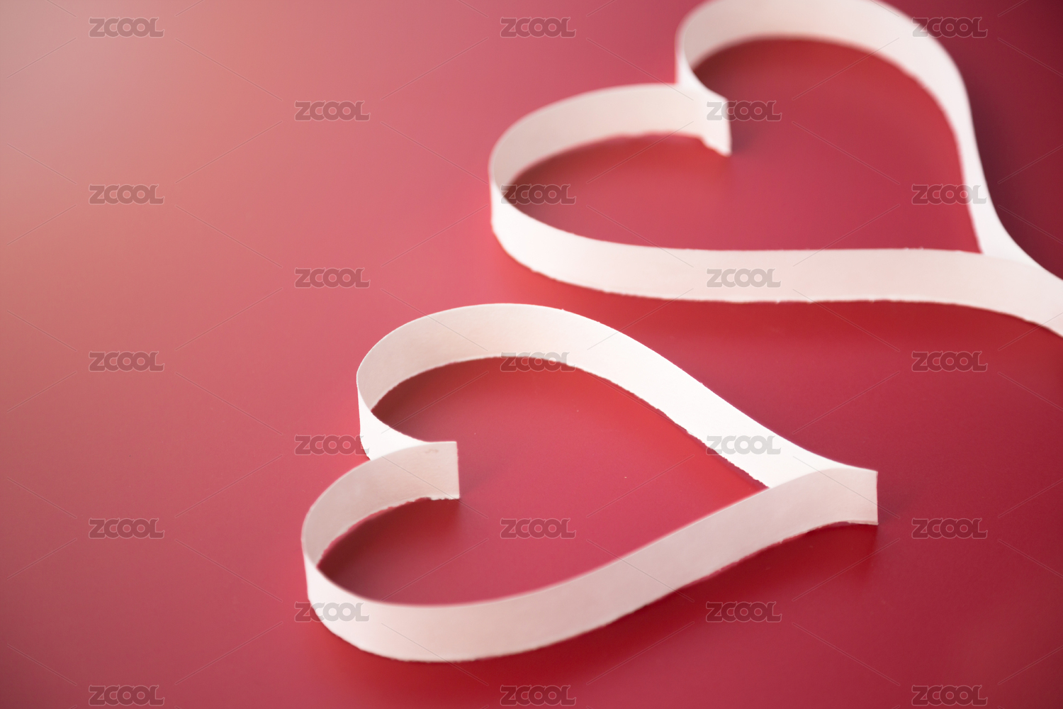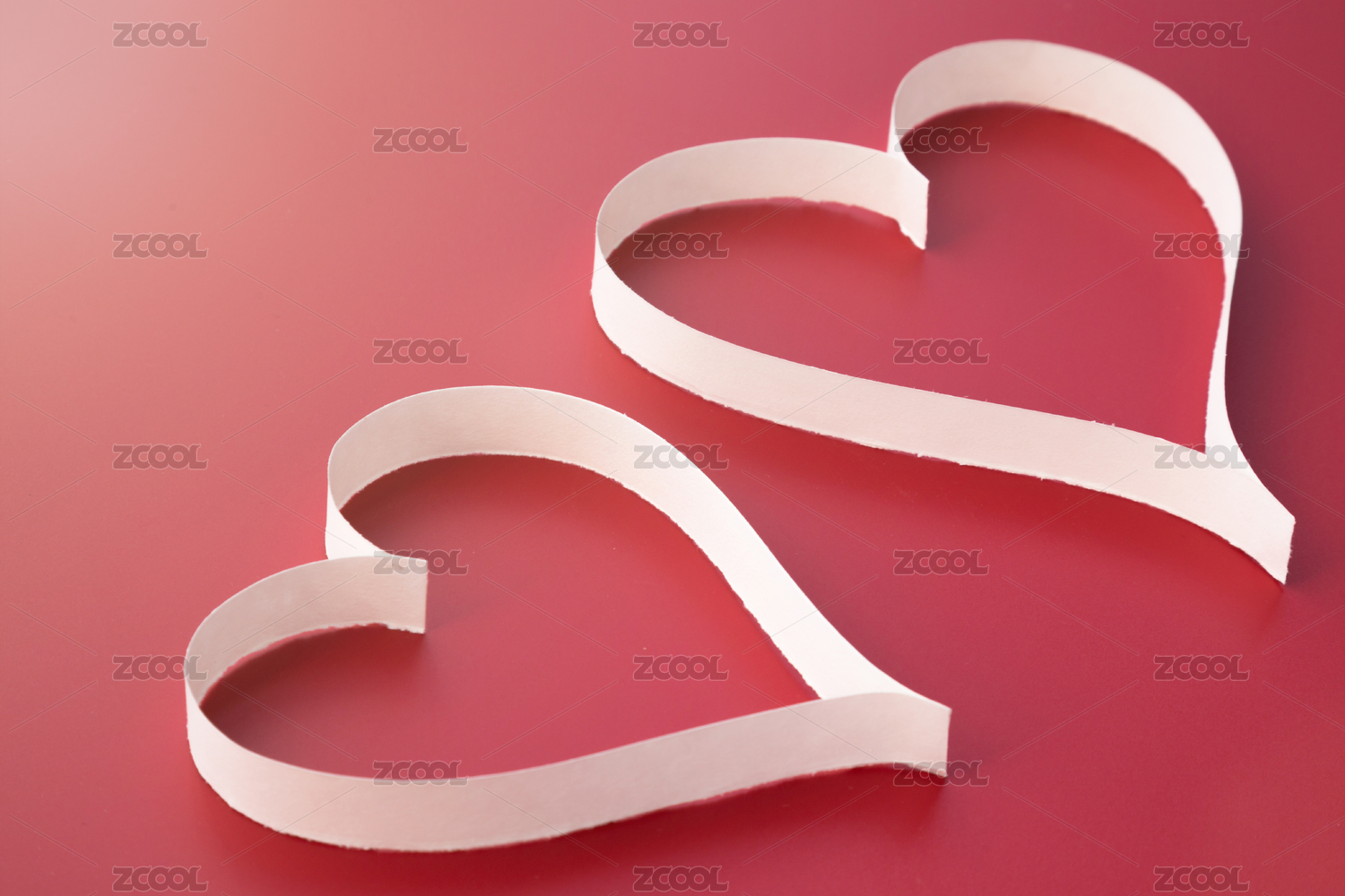 浅粉色背景上白色纸条折叠成的爱心图案
