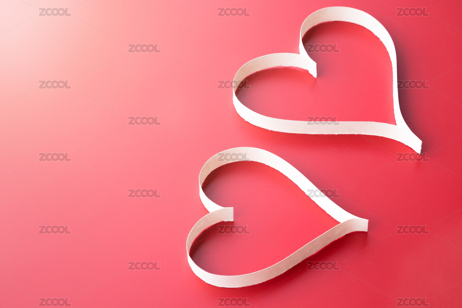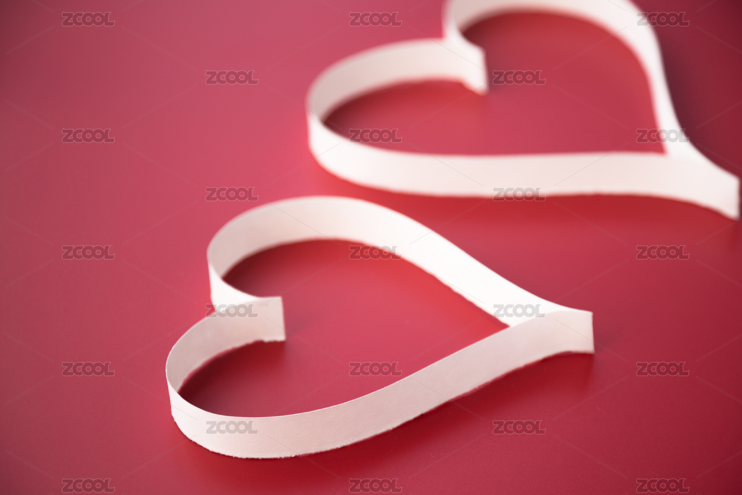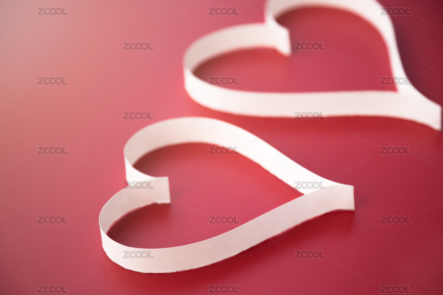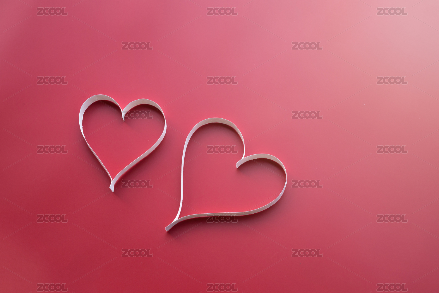 浅粉色背景上白色纸条折叠成的爱心图案