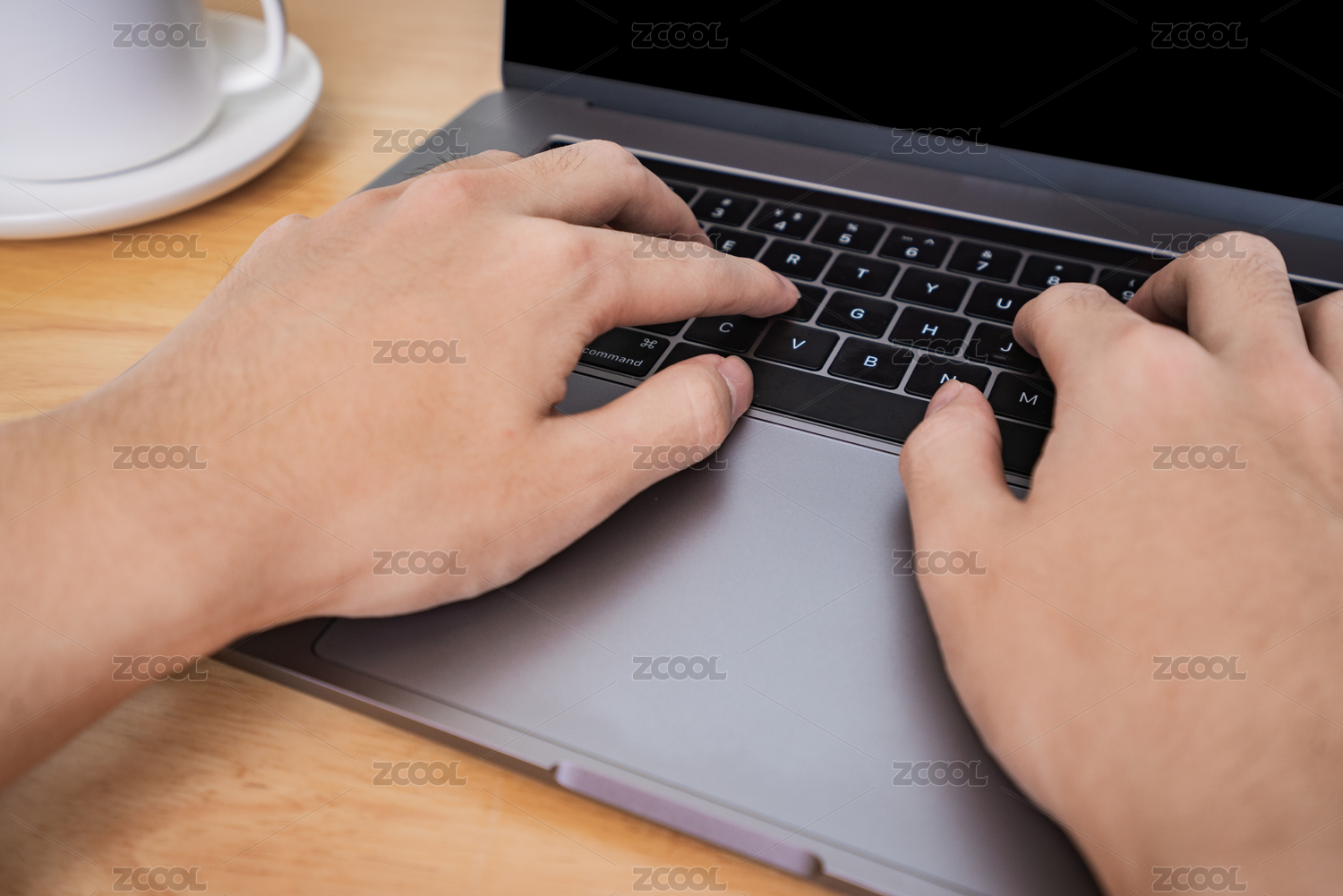 笔记本电脑和操作者的手特写