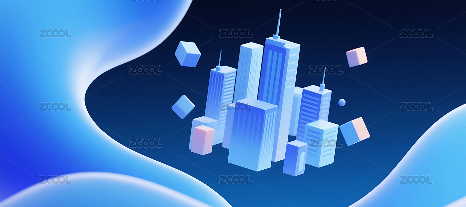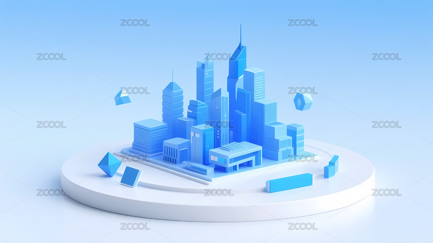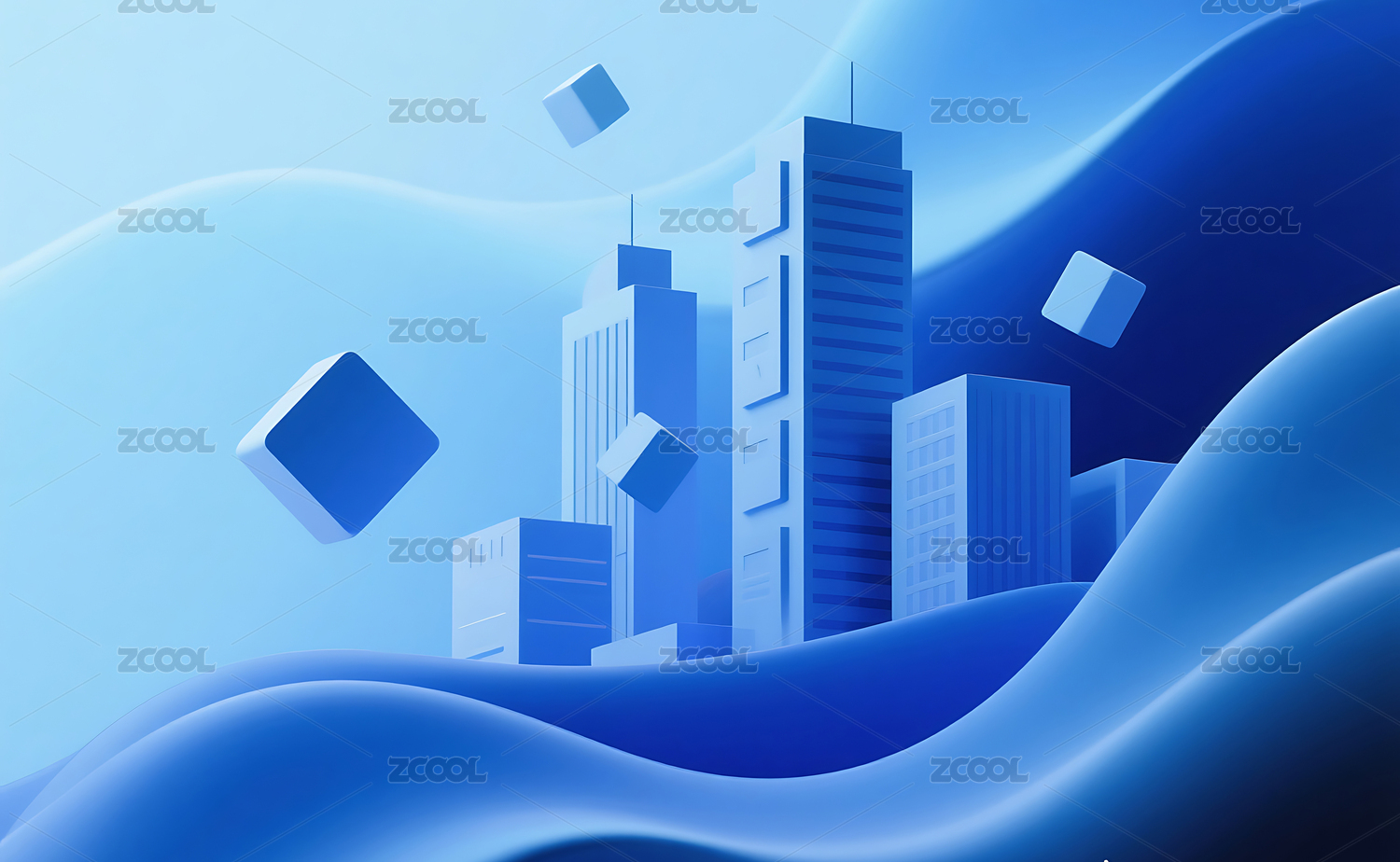 蓝色3D商务科技几何抽象城市漂浮物背景