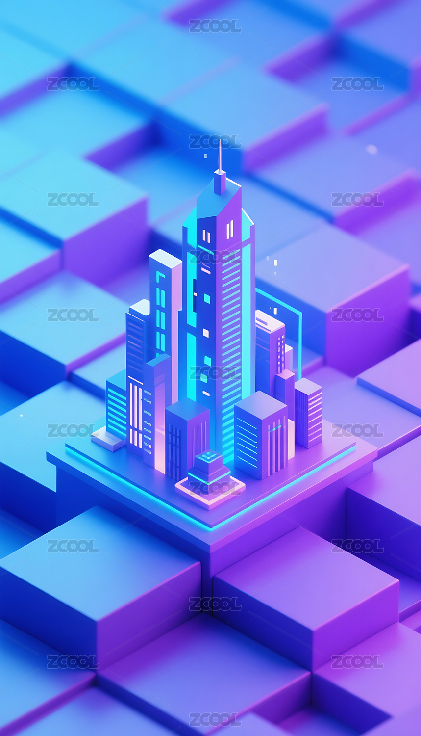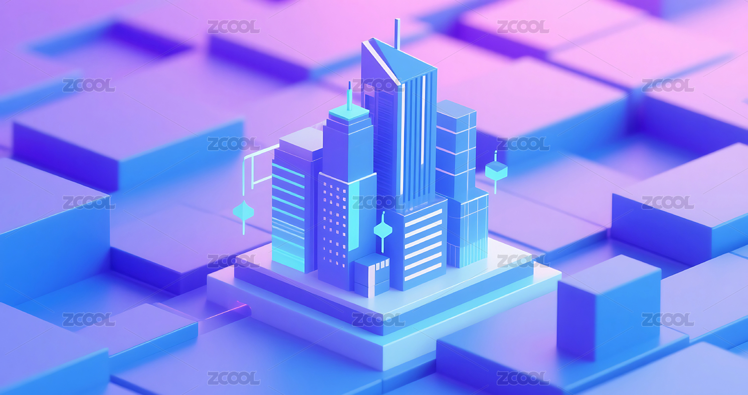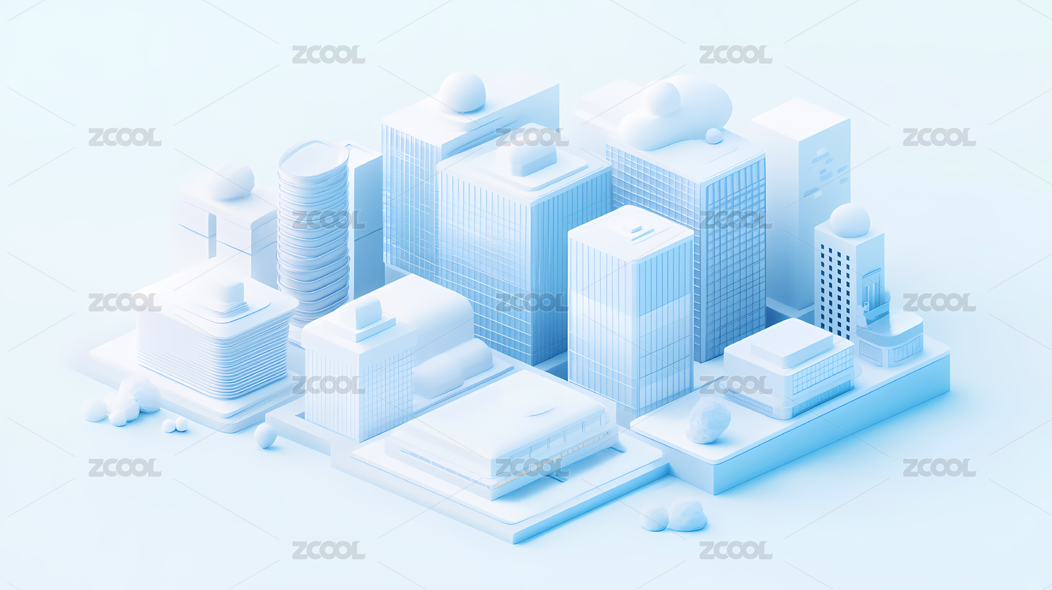 蓝色3D商务科技几何抽象城市漂浮物背景