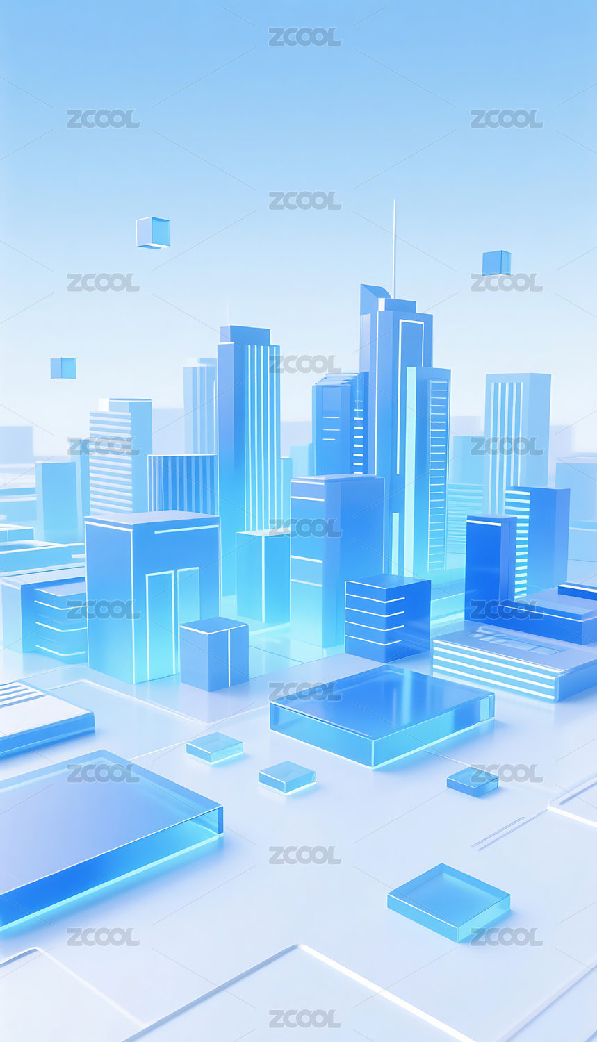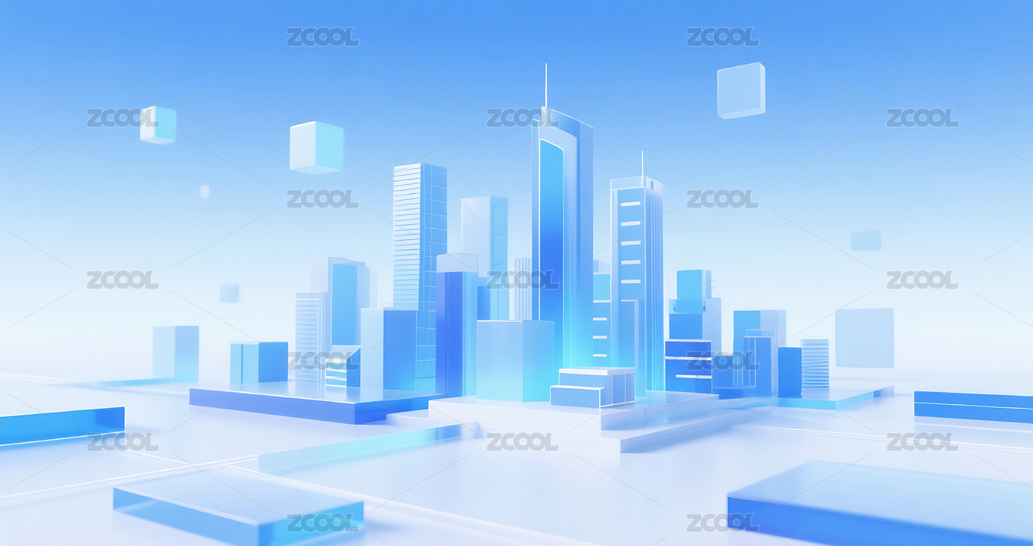 蓝色商务科技未来玻璃质感图形设计城市建筑