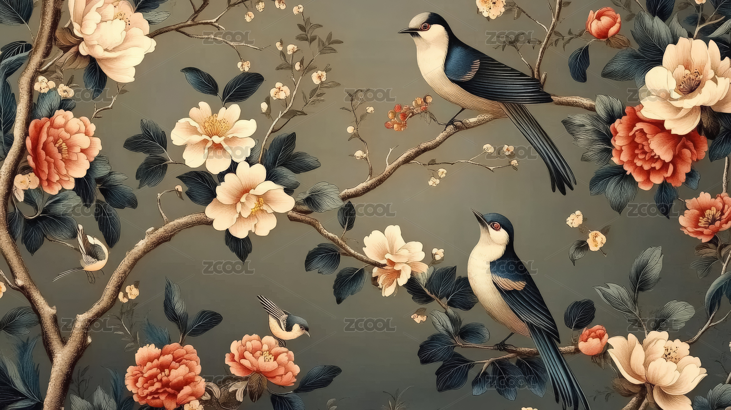 国风工笔画花鸟