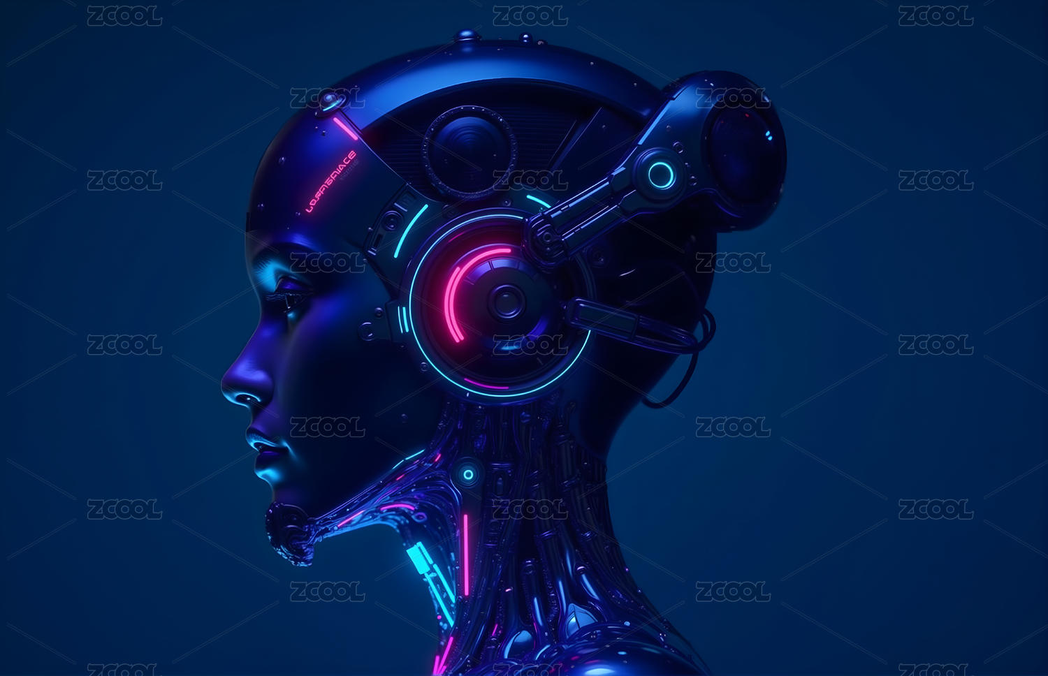 赛博风格女性机器人侧影