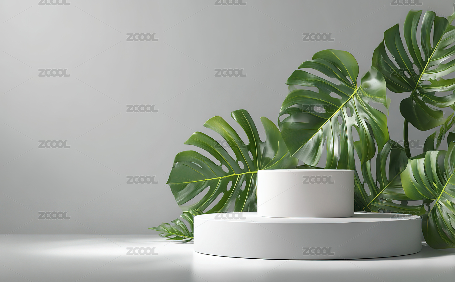 蓝色背景下的植物和桌子上的叶子的特写镜头