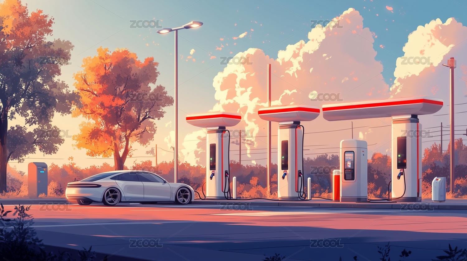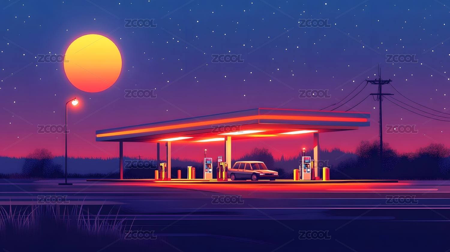 加油站,插画,建筑,服务区,现代,设计,能源,汽油,加油,运输
