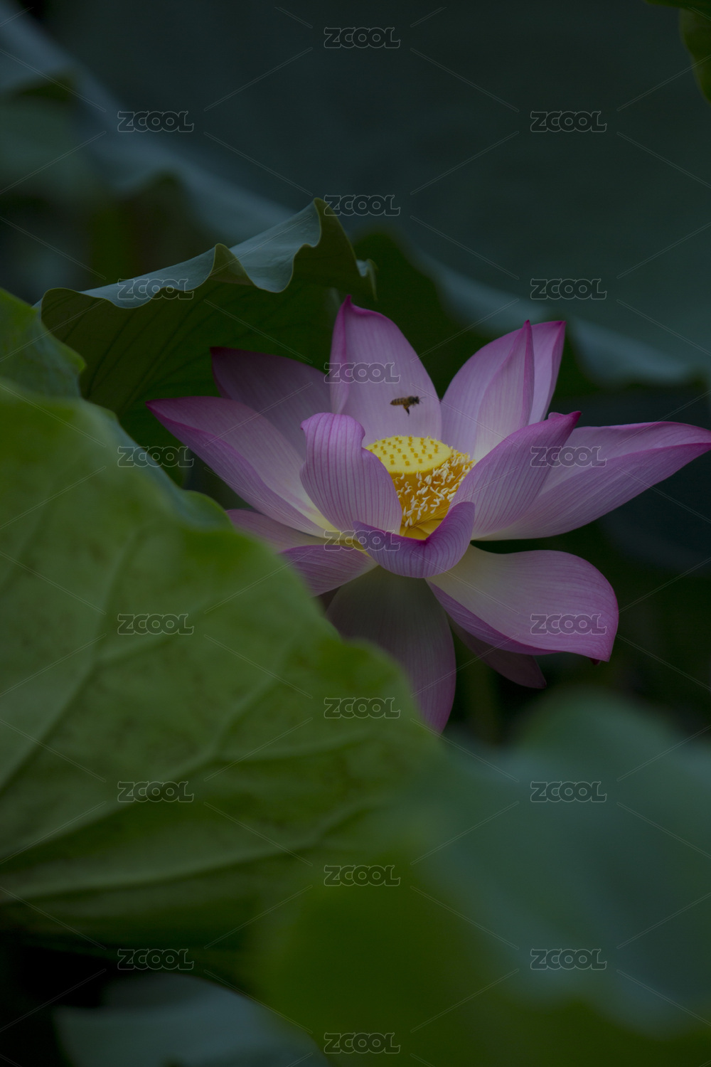 夏日清晨池塘盛开的荷花与采蜜的蜜蜂