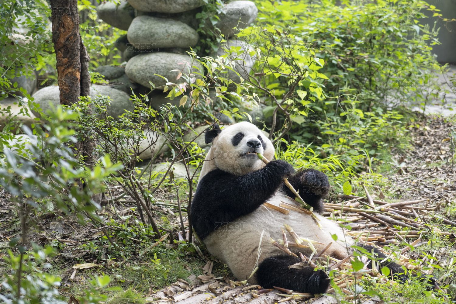 中国,动物,成都,熊猫,四川省,黑白,慵懒的,竹子,国宝