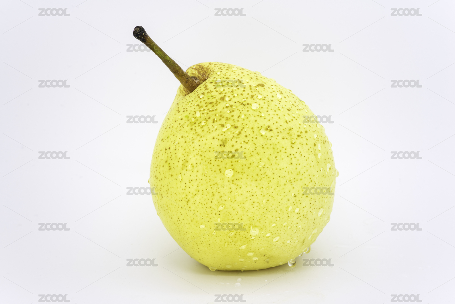 白色背景一个挂满水珠的黄色鸭梨