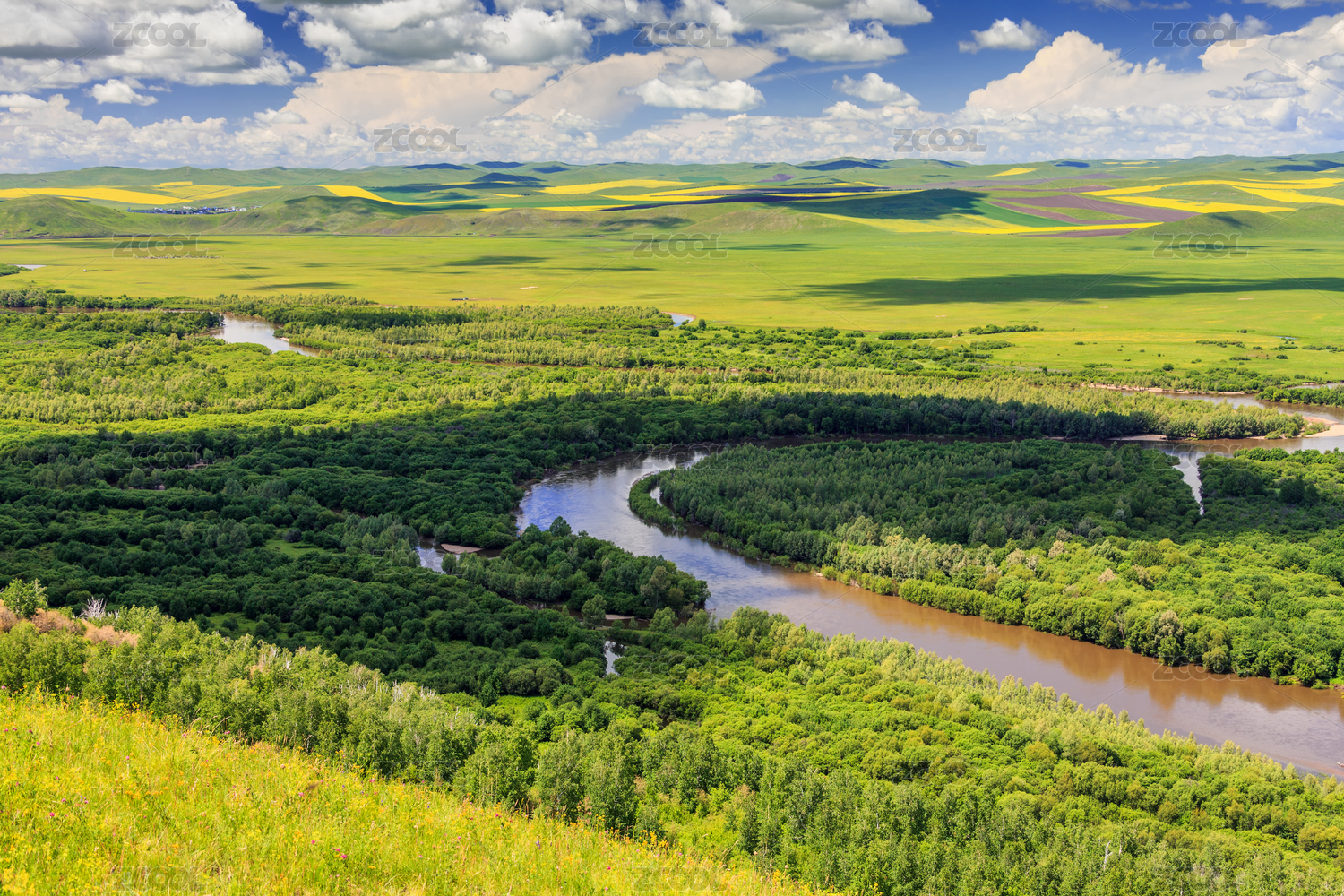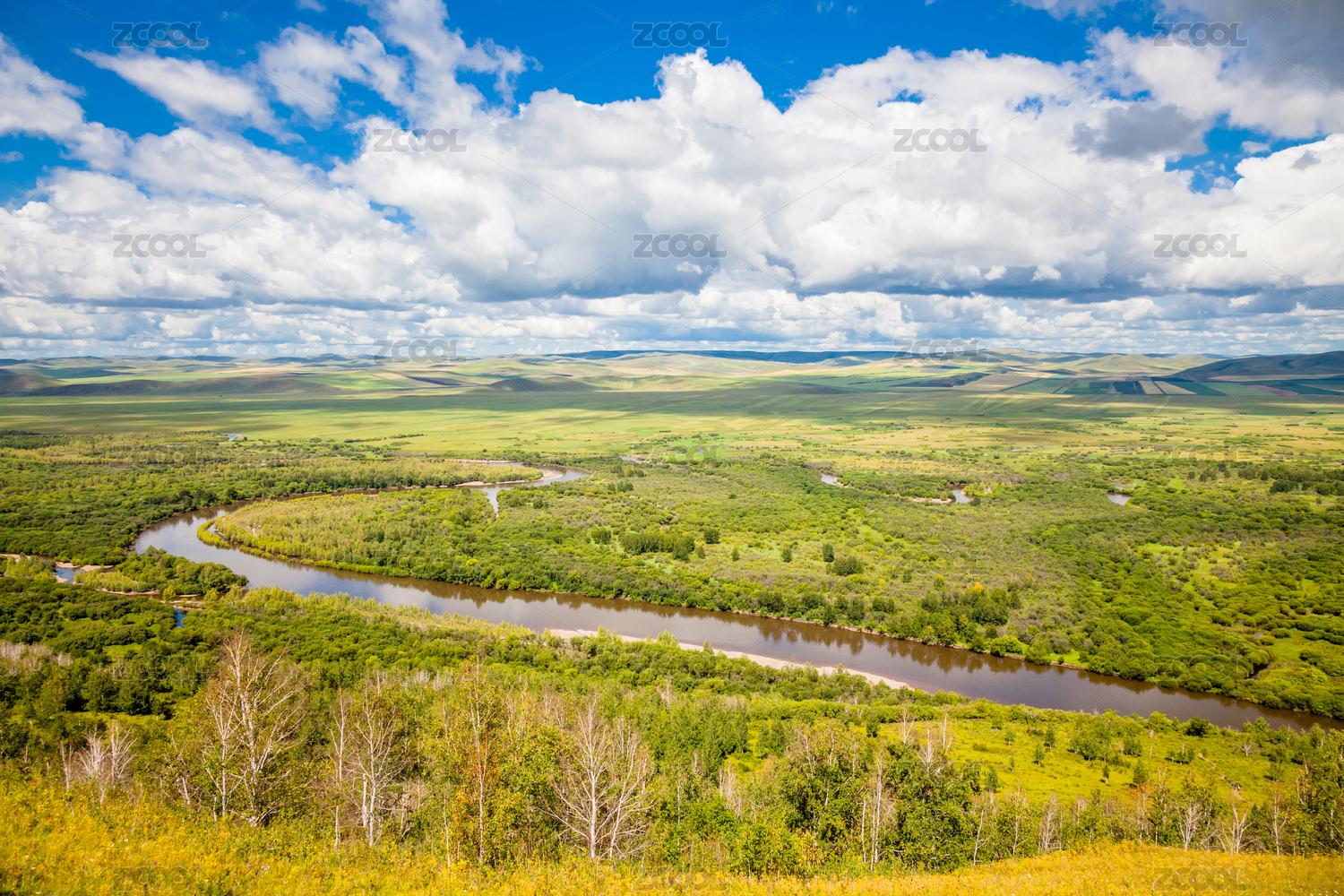 中国内蒙古鄂尔多斯根河湿地全景风光