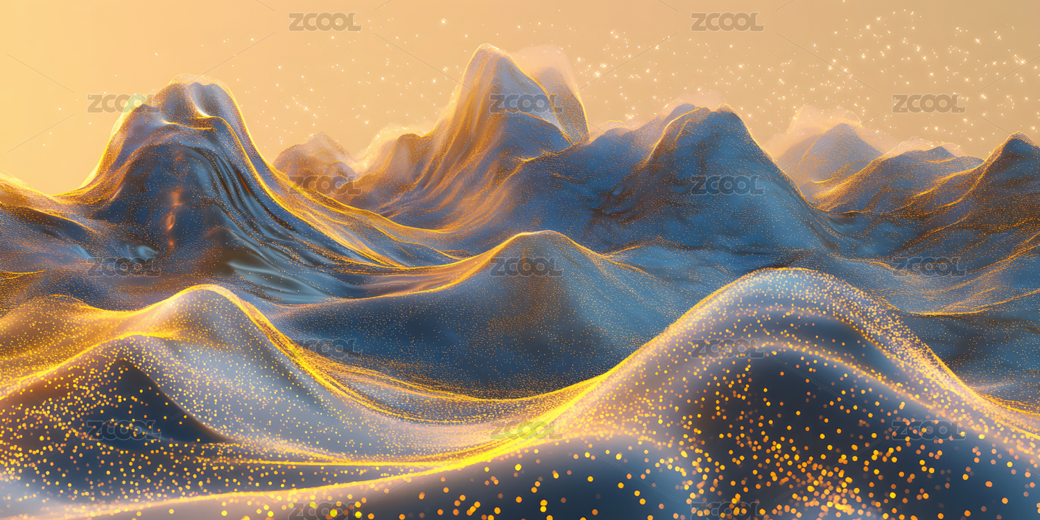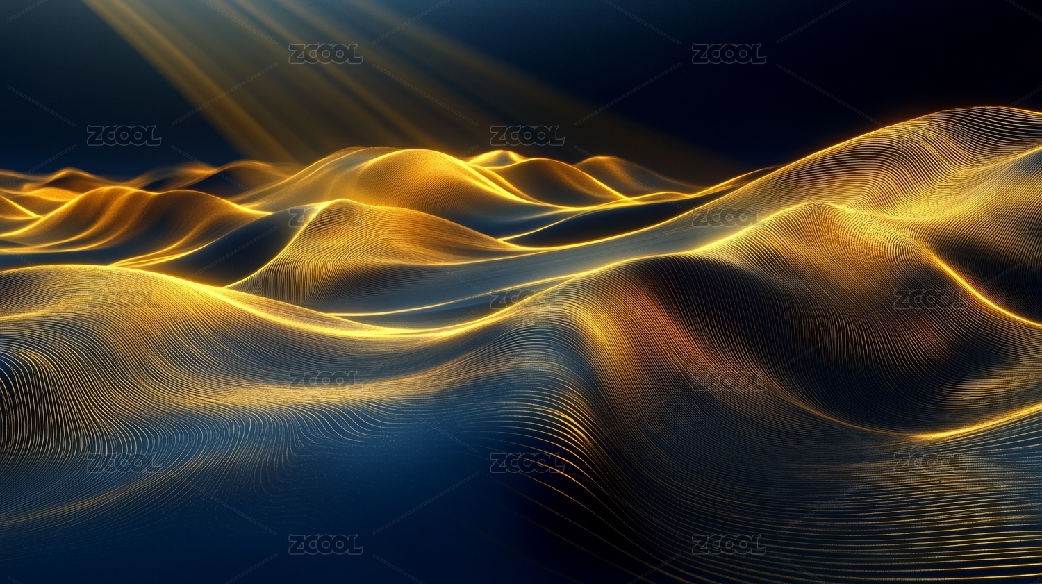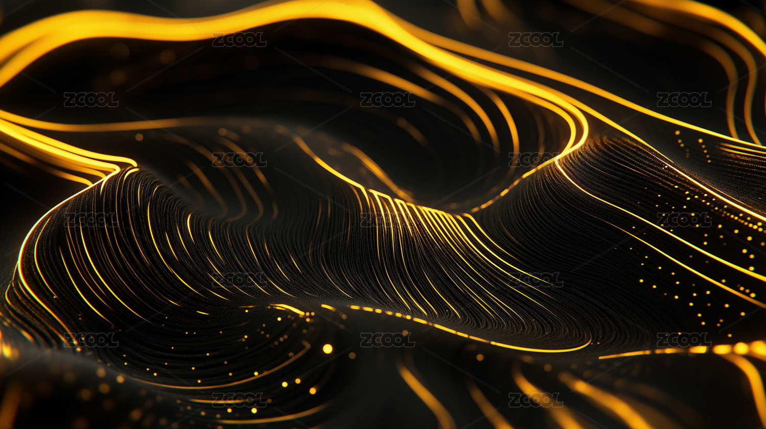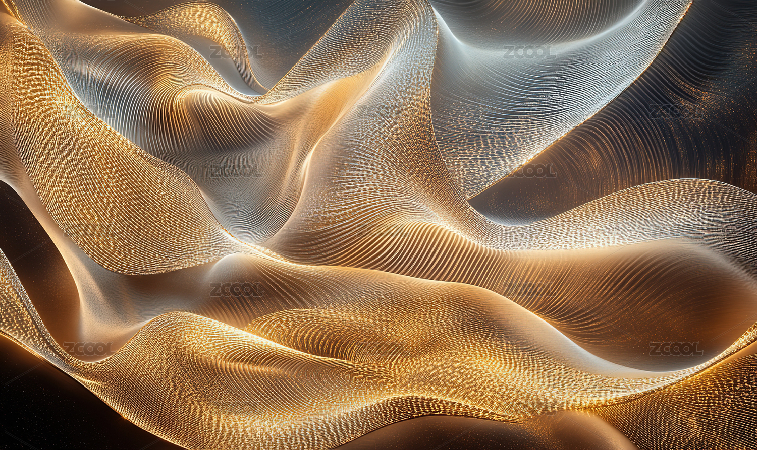抽象,艺术,金色,线条,波浪,质感,未来,3D,空间,三维立体