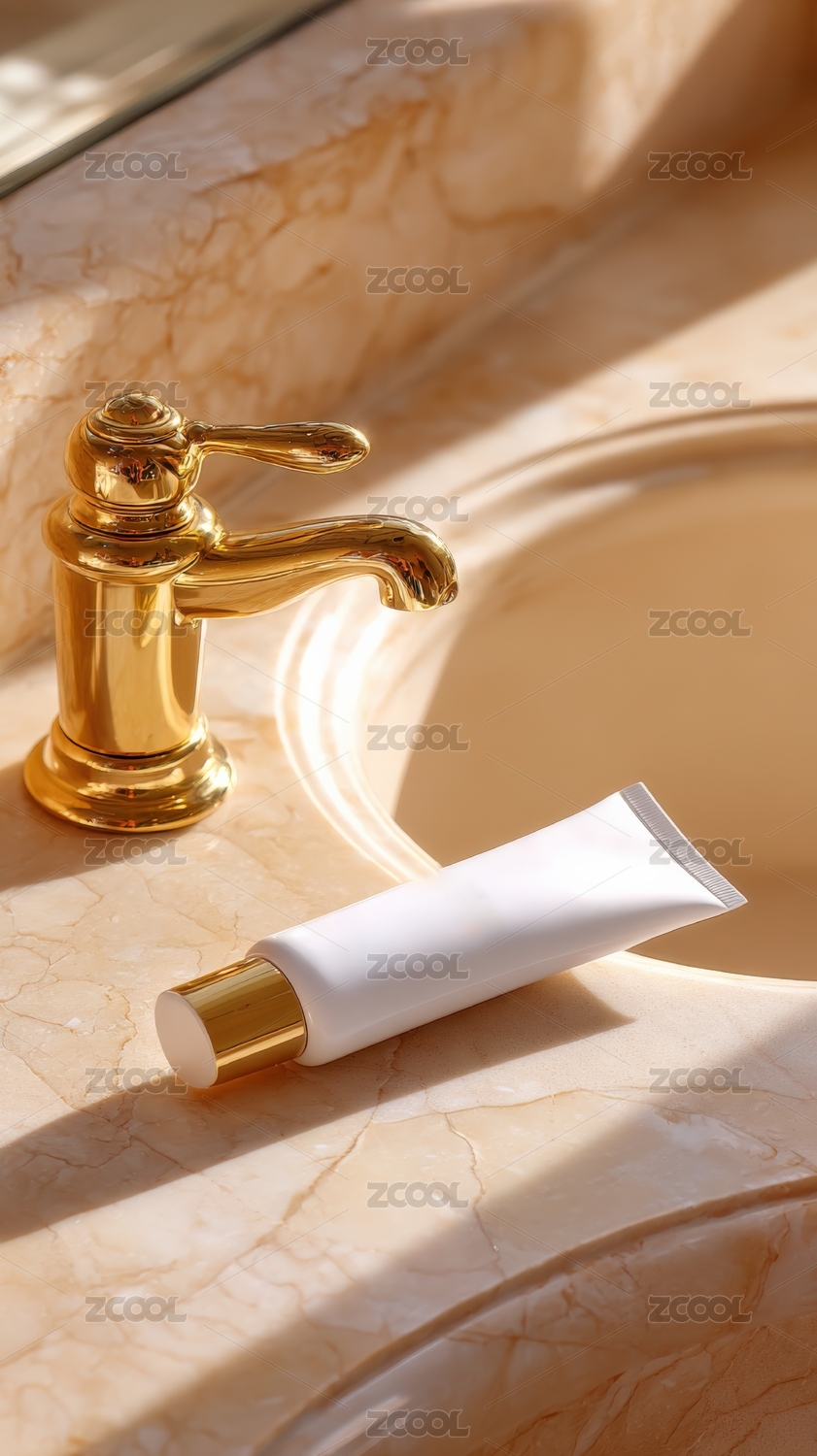 奢华护肤霜在理石洗手台