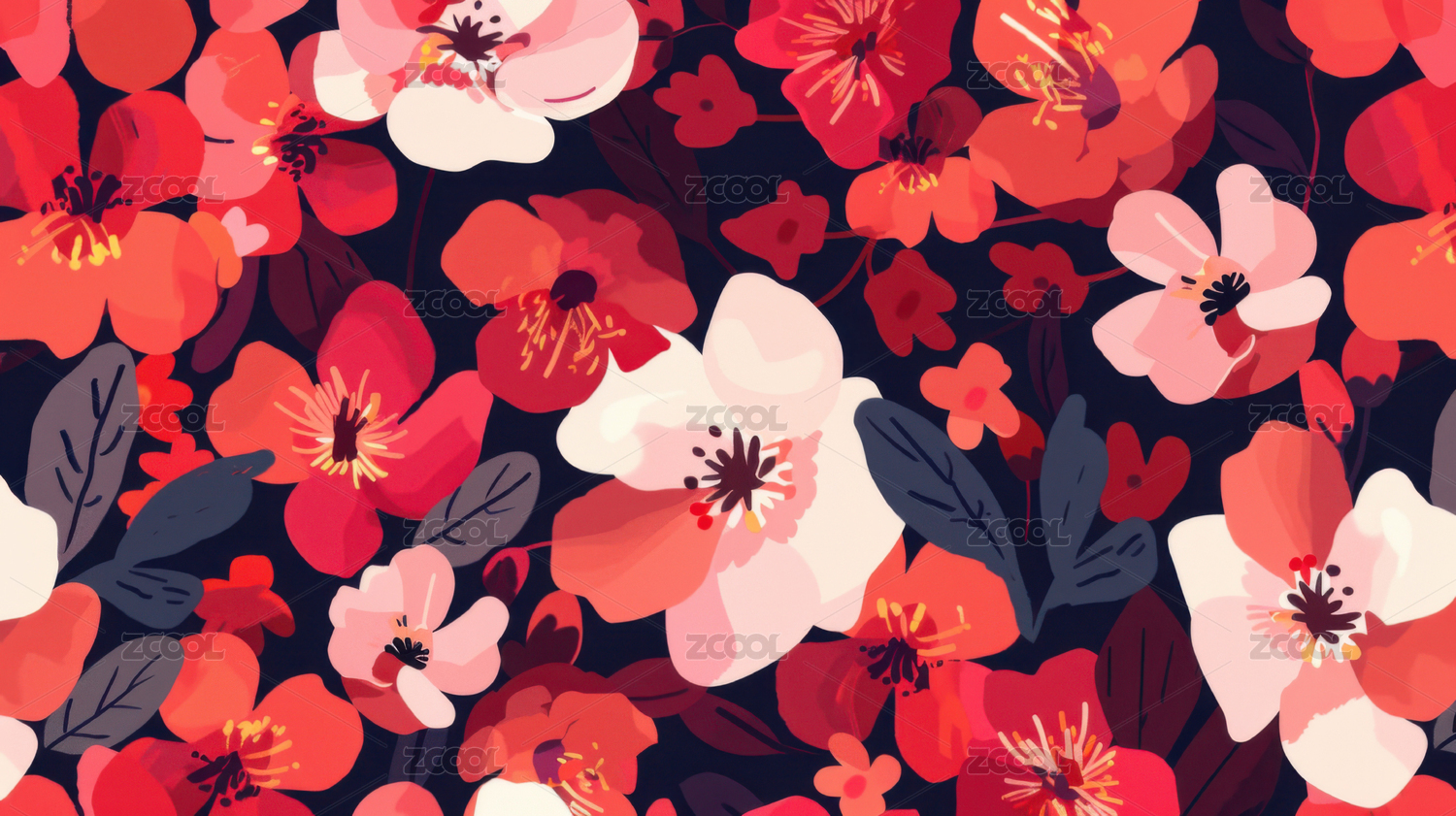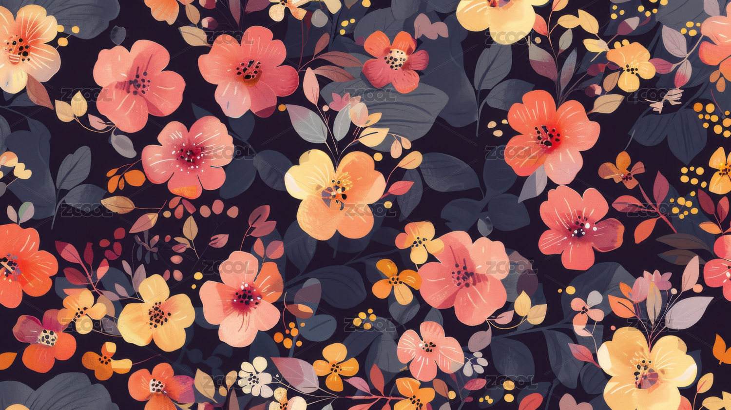 深蓝底色花卉图案