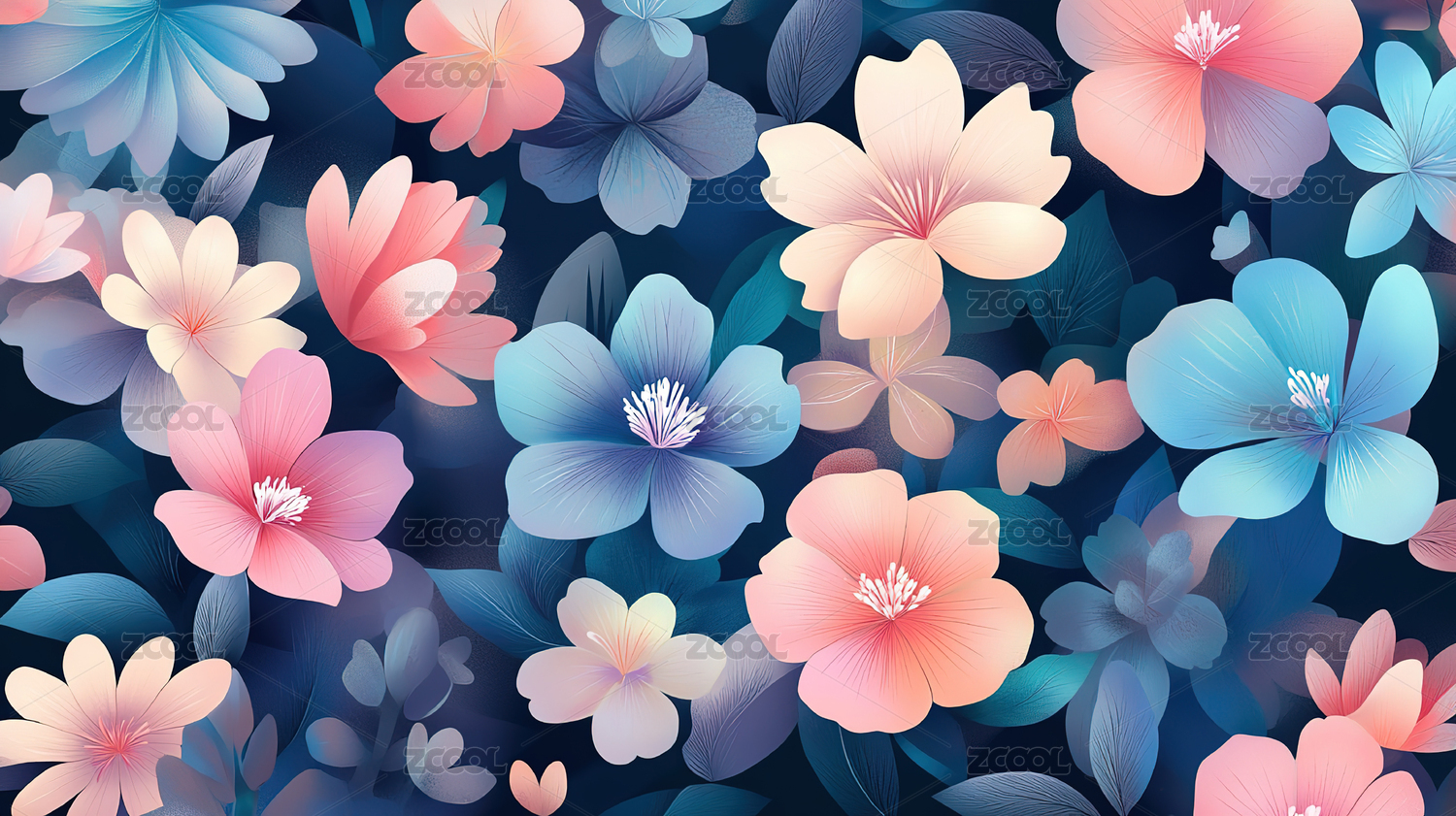 蓝底花卉图案插画