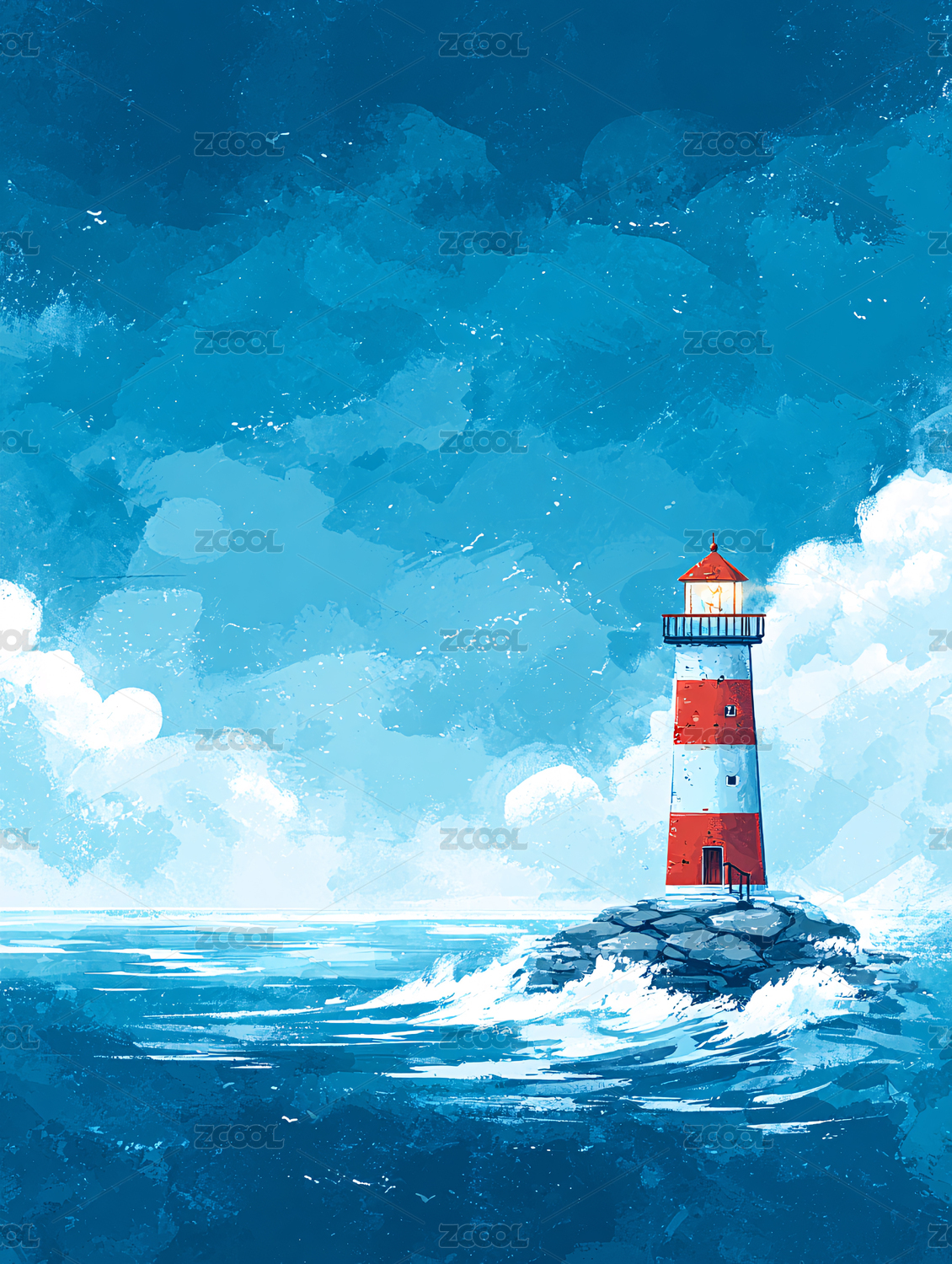 灯塔,海洋,海浪,暴风雨,希望,航海,指引,风暴,油画,绘画