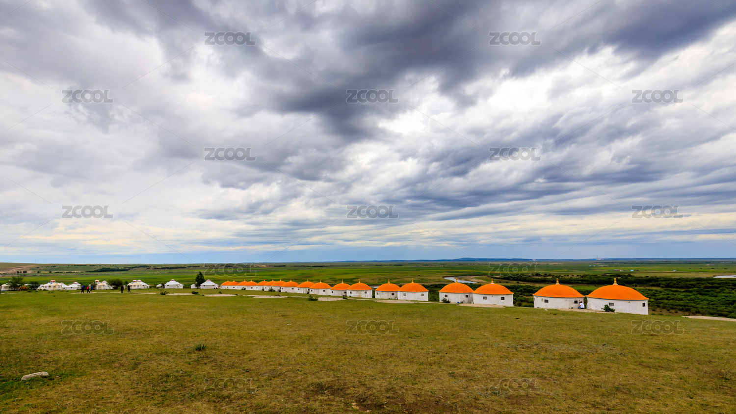 内蒙古呼伦贝尔草原上的蒙古包群落