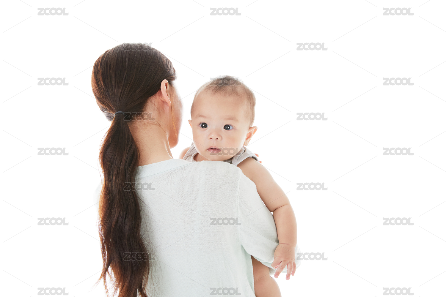 年轻女性抱着婴儿的背影