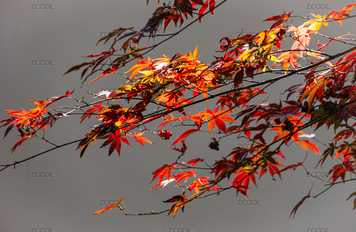 秋天红色枫叶树枝