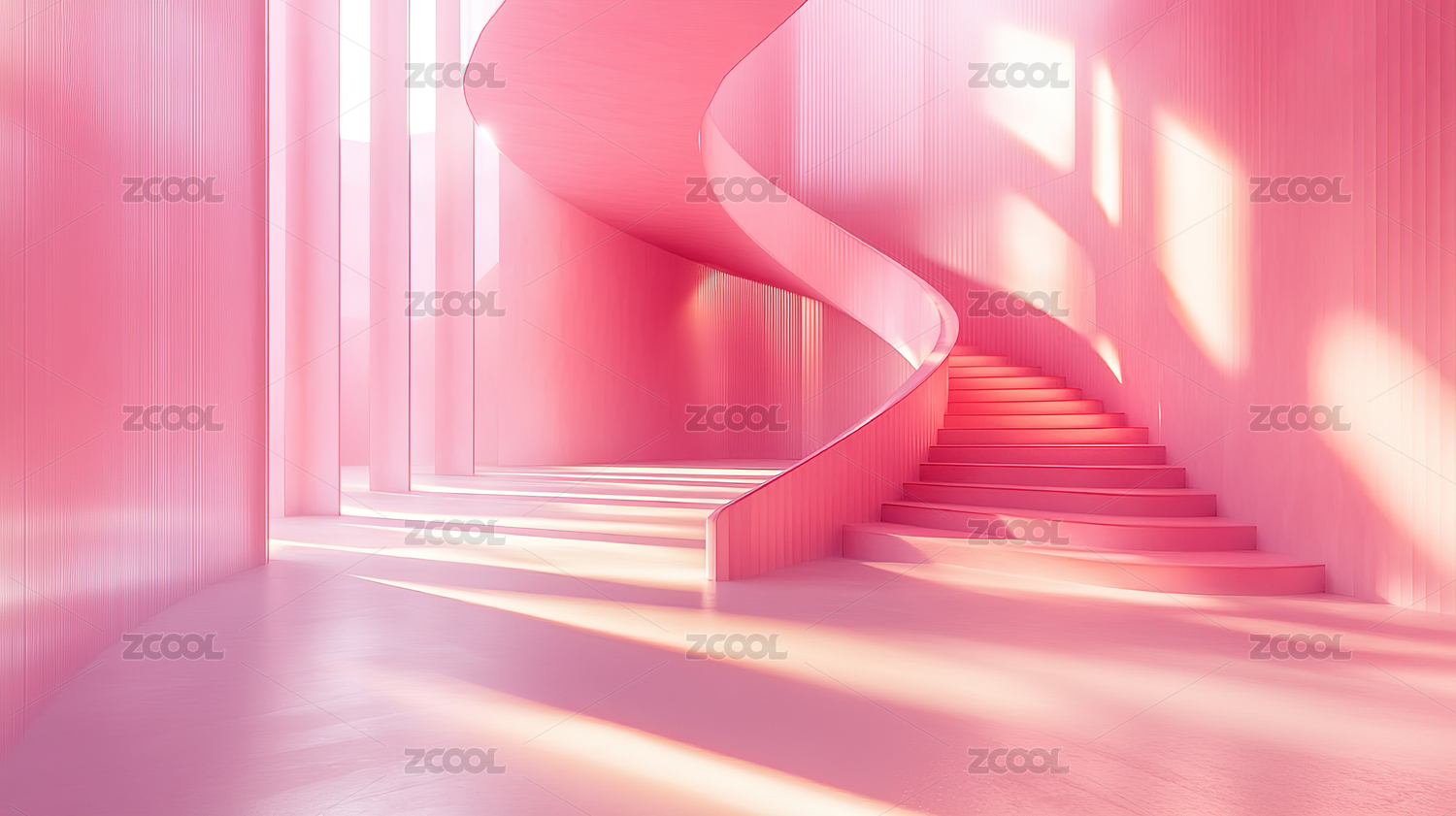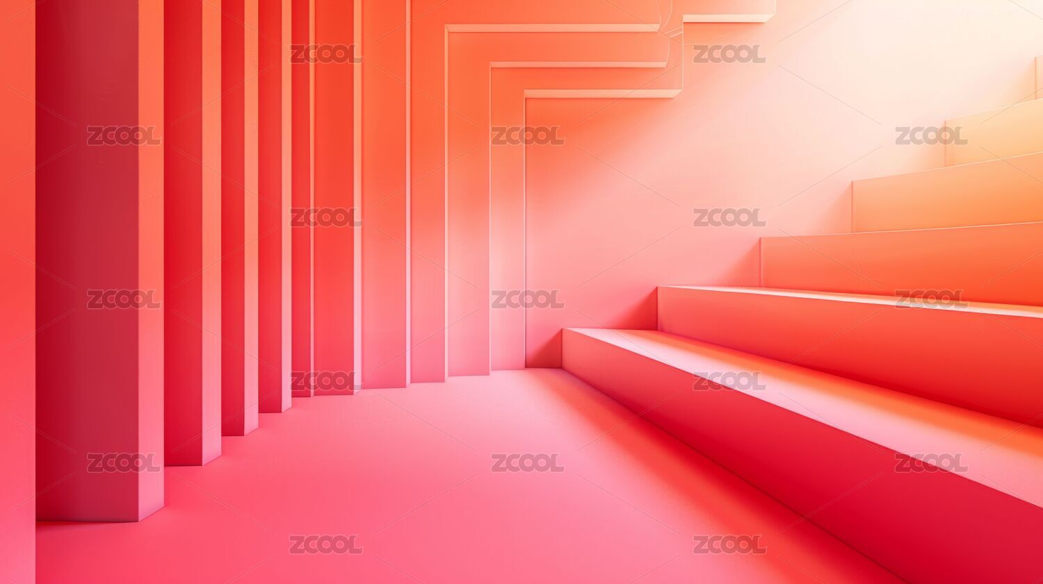 粉色柱状拱门空间与阶梯舞台