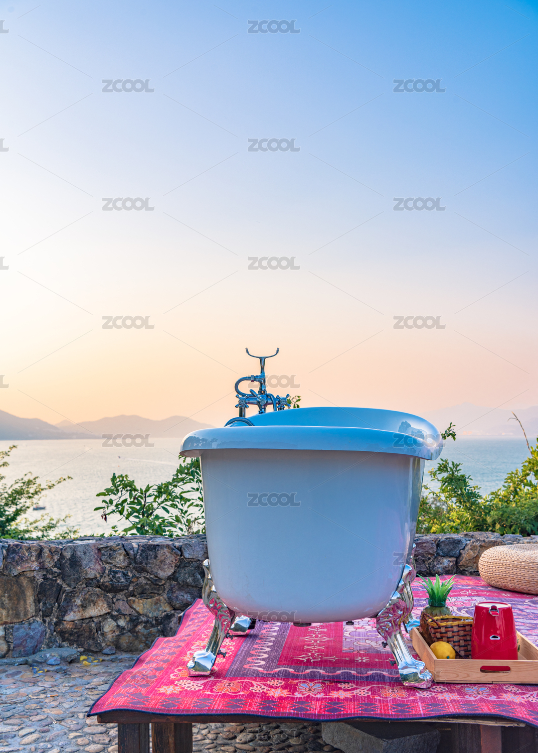中国深圳大鹏鹿嘴山庄一处观景台上的浴缸