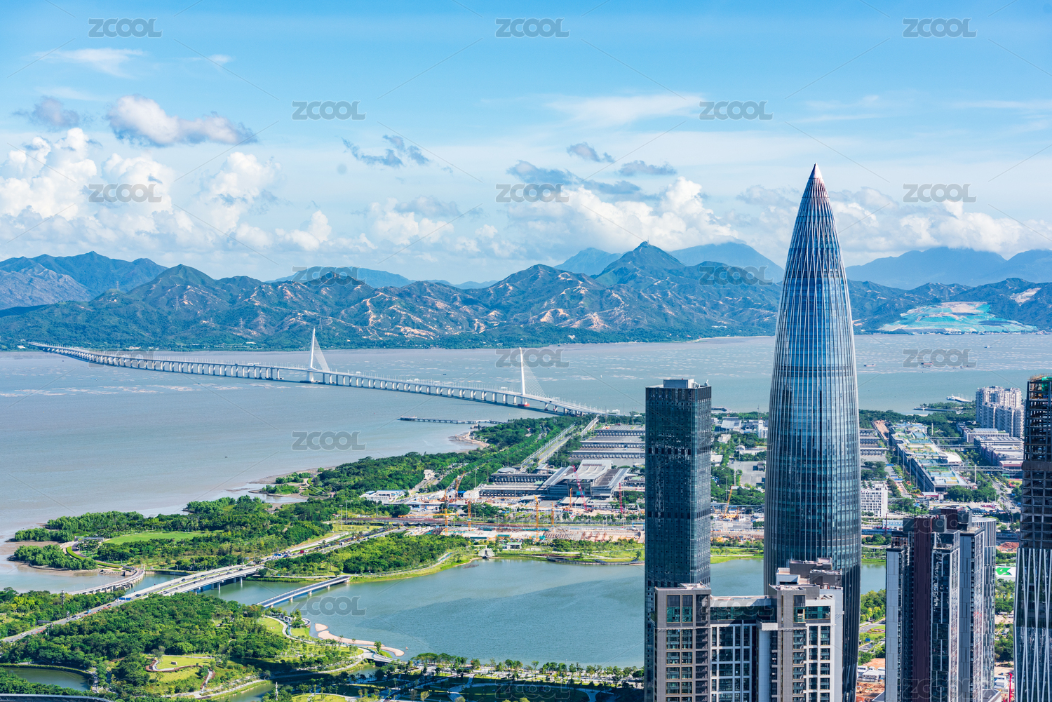 中国深圳大湾区春笋和深圳湾大桥