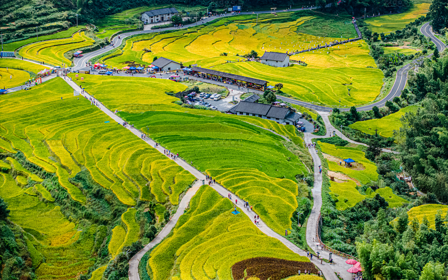 江西赣州崇义县上堡梯田稻谷金黄绚烂如画