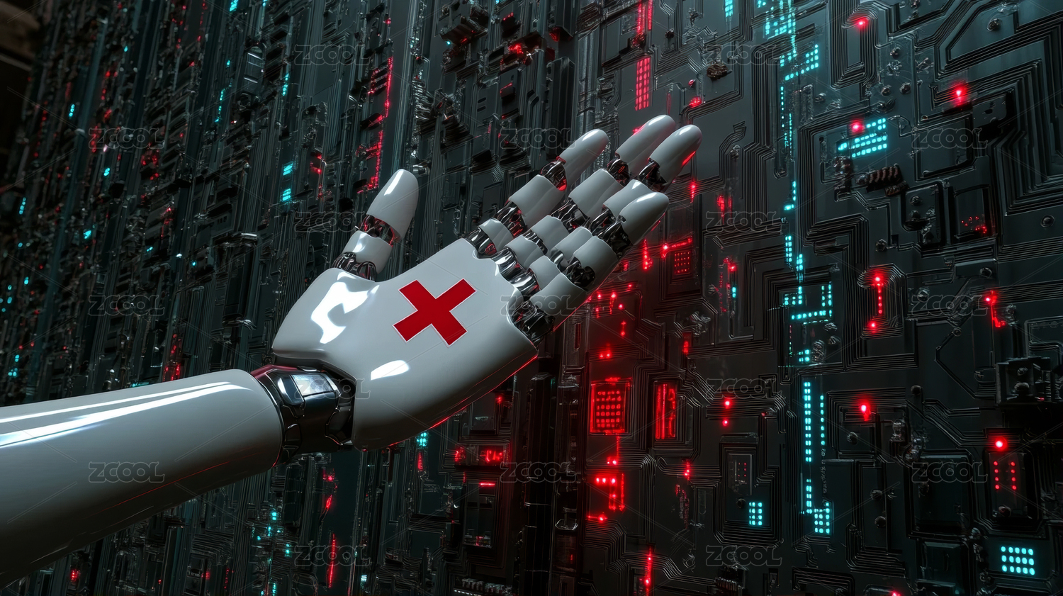 机器人手与医疗符号科技感图像