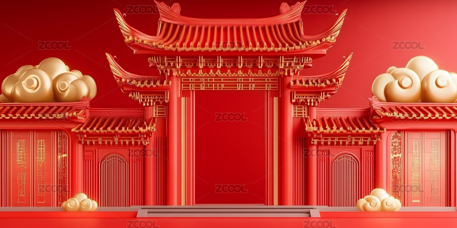 国庆,古建筑,国庆节,红色,喜庆,产品展台,门楼,牌坊,舞台,展台