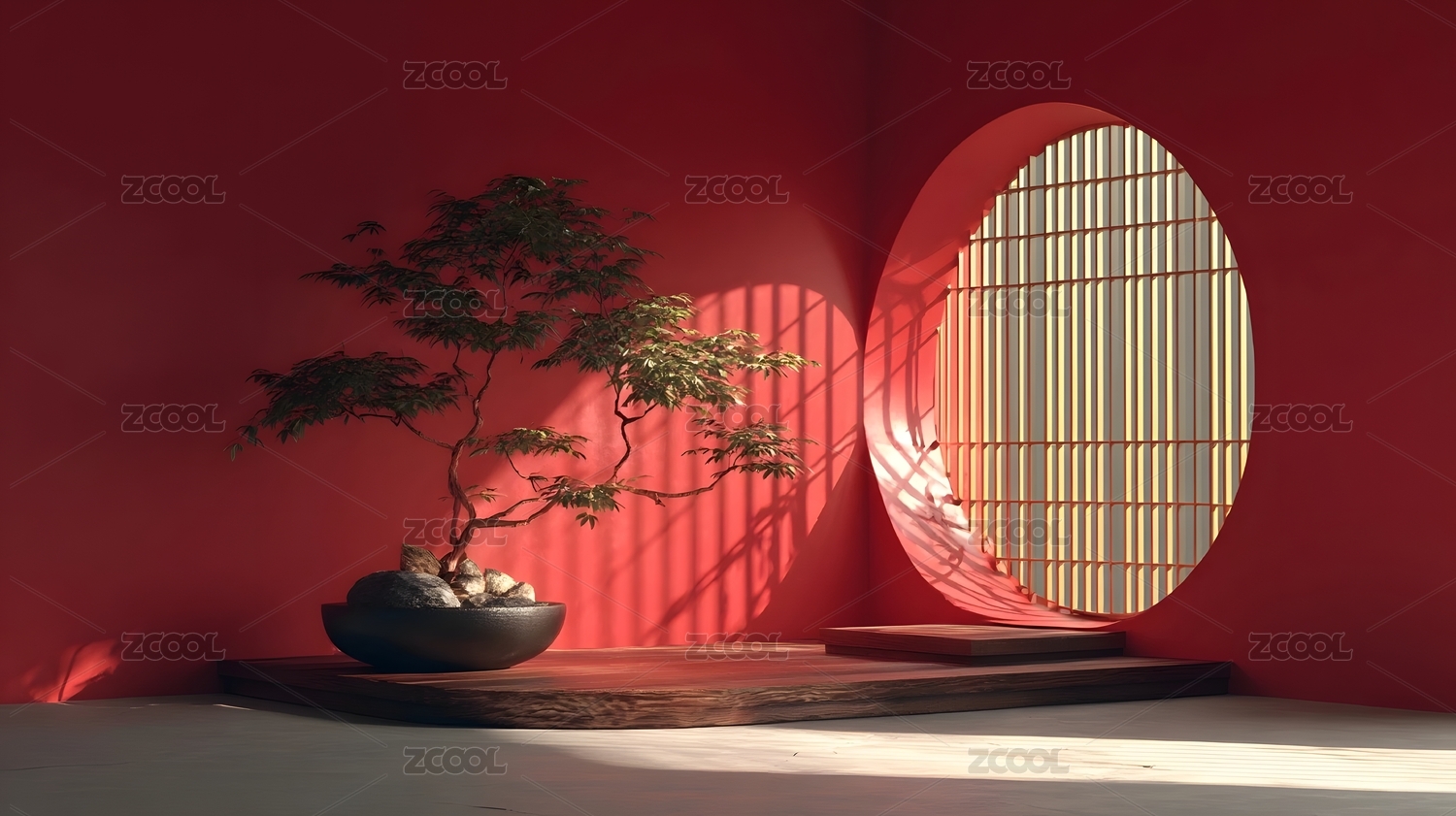 圆形窗户,窗户,半透明,木制百叶窗,柔和,窗外,光线,模糊,植物,装饰
