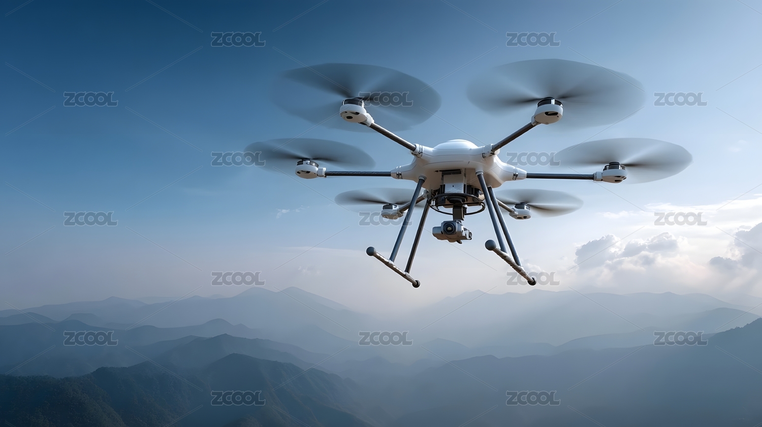 无人机,螺旋桨,摄像头,淡蓝色,天空,山脉,树木,户外,宁静,探索自然